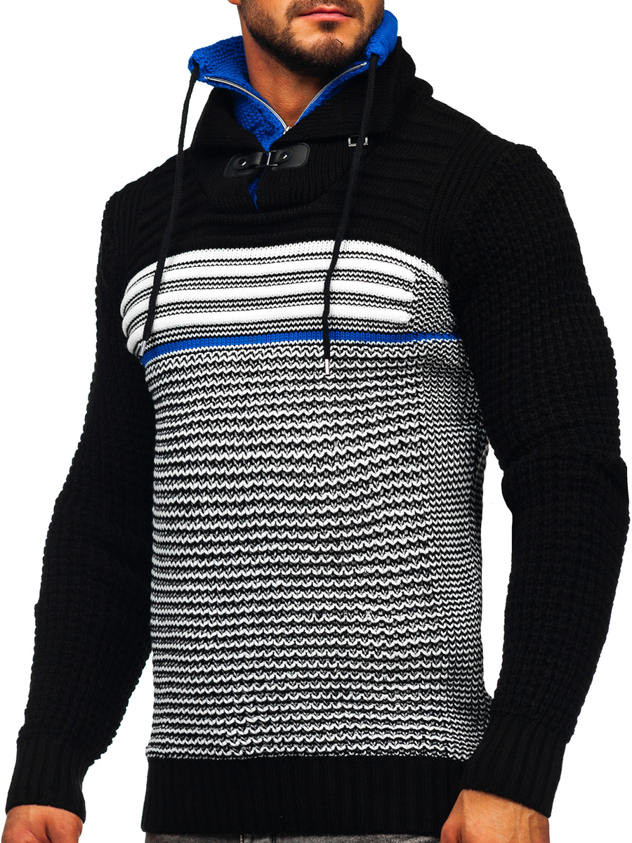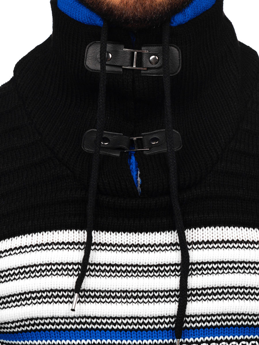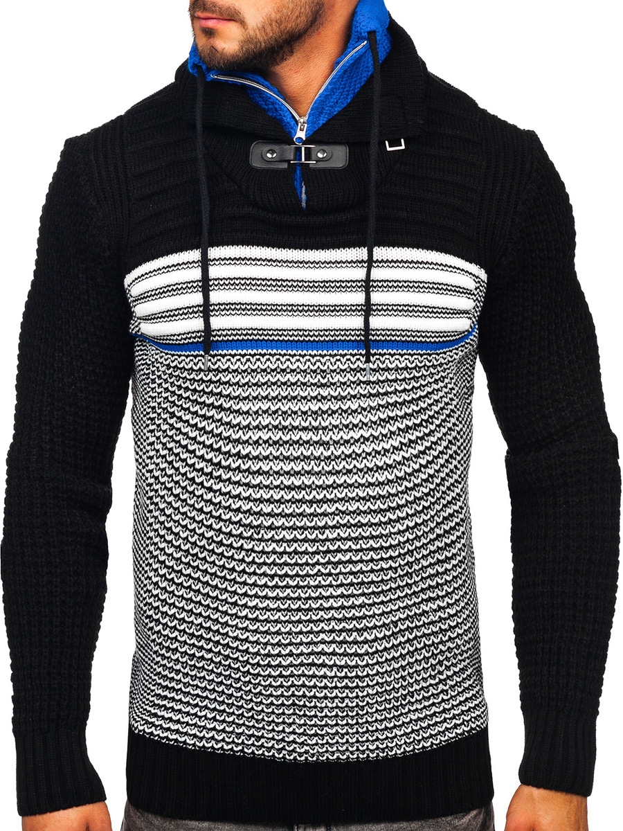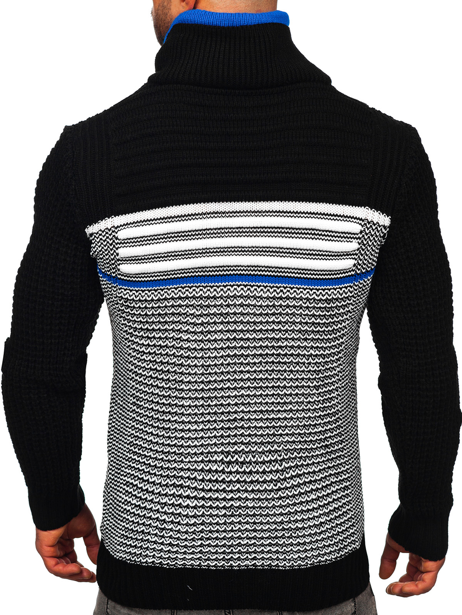 A felhasználók véleménye Vastag állógalléros férfi pulóver fekete-kék színben Bolf 2026