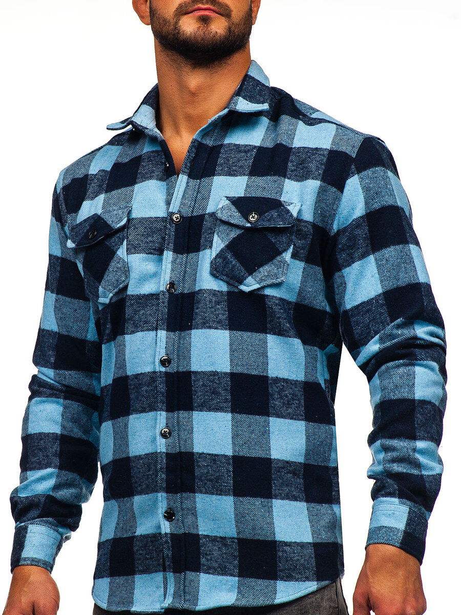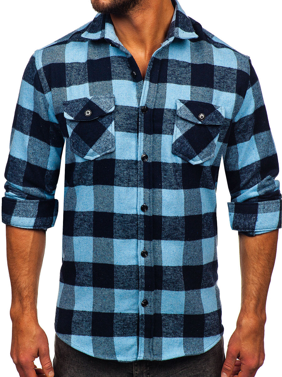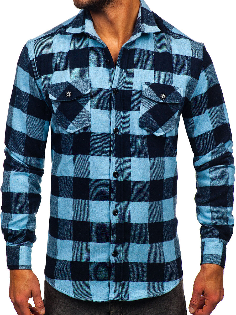 A felhasználók véleménye Hosszú ujjú férfi flaneling égszínkék színben Bolf 20723