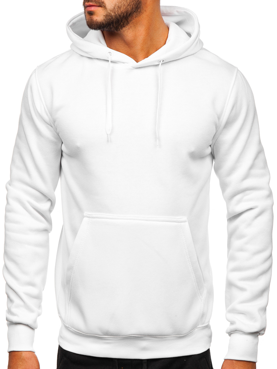 Fehér színű, kapucnis férfi melegítő együttes - Bolf D002 - tréning szett, mely a szabadban végzett edzéseken vagy az edzőteremben is megállja a helyét. A szett egy pulcsit és egy nadrágot tartalmaz. A kapucnis pulcsinak időtálló kenguru típusú zsebe van. A nadrág állítható derékban erős megkötővel és szűkítővel és két zsebe van oldalt. Sportos jelleget az egyenes, testhezálló fazon biztosít. Finom, kellemes tapintású anyagból készült termék. A melegítő szett alapként szolgálhat hétköznapi és sportos stilizációk létrehozásában is. A pulcsi és a nadrág jól párosítható különböző ruhadarabokkal, ami széles lehetőségeket kínál a mindennapi stilizációk létrehozásához. A szett nagyszerűen mutat pólóval könnyű átmeneti dzsekivel vagy sportdzsekivel. A melegítő szett különféle helyzetekben is megállja a helyét, akár otthon, séta közben vagy bevásárláskor, valamint az edzőteremben vagy a szabadban végzett edzéseken is beválik.