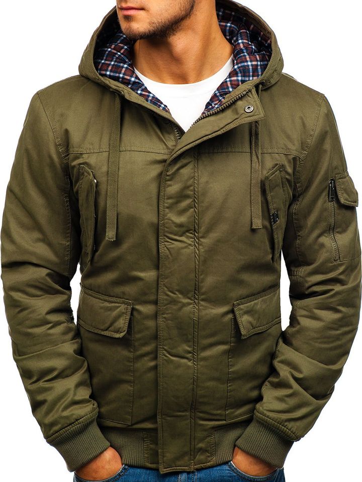 Zöld színű, téli férfi dzseki, Bolf 1890, az őszi-téli szezonnak a legjobban keresett modellje. Bélelt, cipzározható és gombolható. Állítható, gallérral kombinált kapucni, melynek bélése kockamintás. Az ilyen típusú téli dzseki jól mutat sportos és hétköznapi stilizációkban, nagyszerű kiegészítése a streetes és a smart casual outfitteknek is. Minta nélküli, fekete színű. A termék praktikus állógallérral rendelkezik, amely hatékonyan véd még a hidegebb és a szelesebb napokon is. A dzseki számos praktikus zsebbel rendelkezik.. Alul két külső, patentos nagy cargo zsebbel és két oldalsó zsebbel. Két patentos zsebfedős mellzsebbel és egy belső, cipzározható zsebbel rendelkezik. Az ujjak és a dzseki alsó része passzés, ennek köszönhetően jobban idomul az alakhoz. A legújabb trendekbe is nagyszerűen illeszkedik. Vastag, meleg, magas minőségű anyagból készült, véd a hideg elől a legfagyosabb napokon is. Nagyszerűen kiegészíti a hétköznapi öltözetet, nagyszerűen beválik hidegben is.