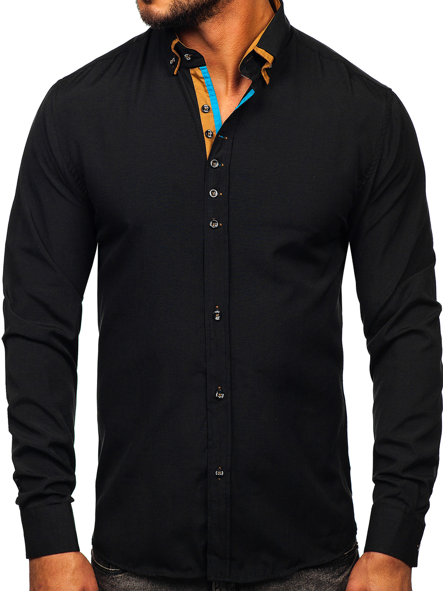 A felhasználók véleménye Elegáns hosszú ujjú férfiing fekete színben Bolf 3708-1