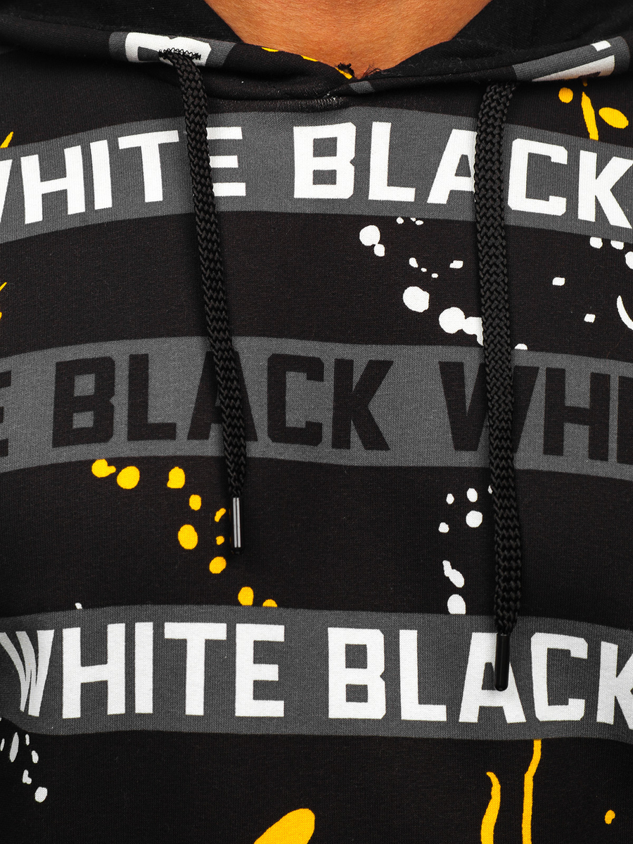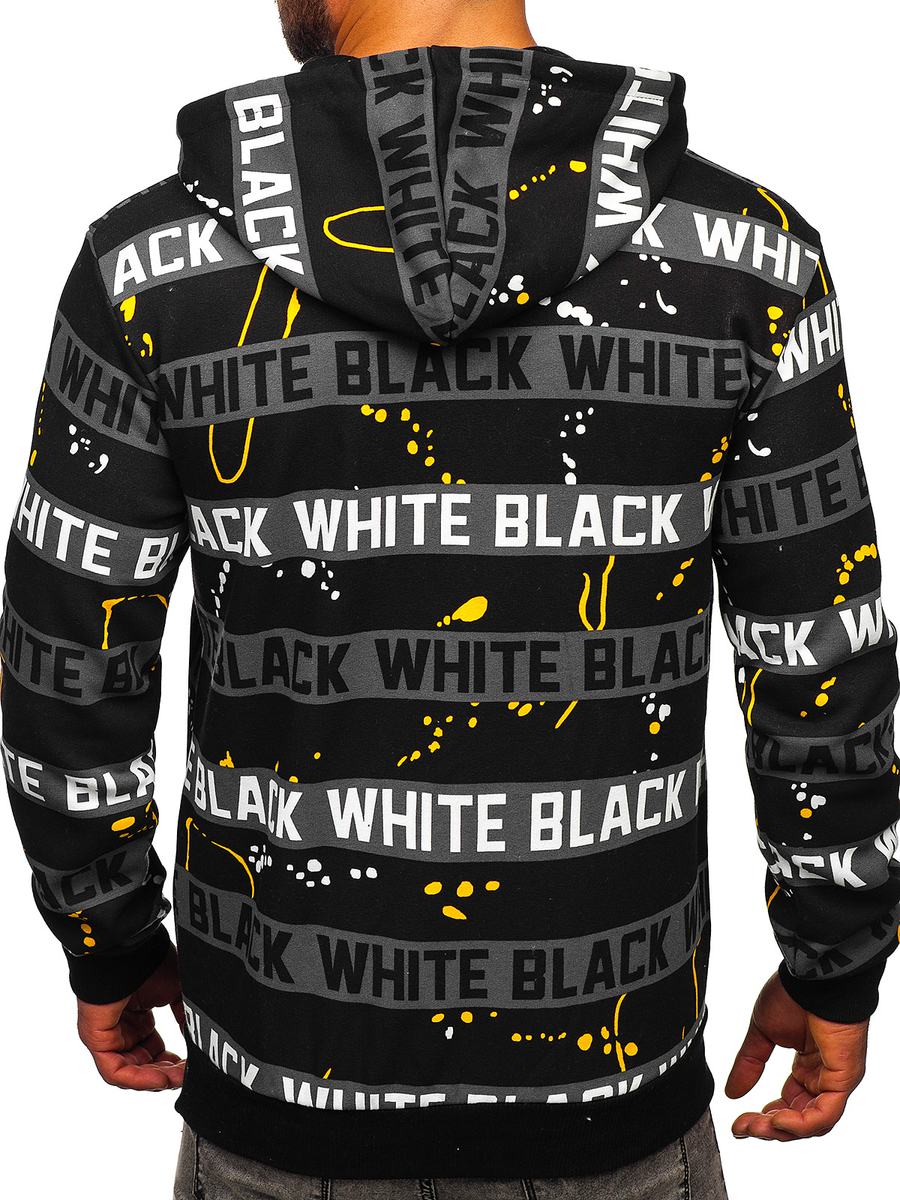 A felhasználók véleménye Férfi pulcsi nyomattal és kapucnival fekete-sárga színben Bolf 141034