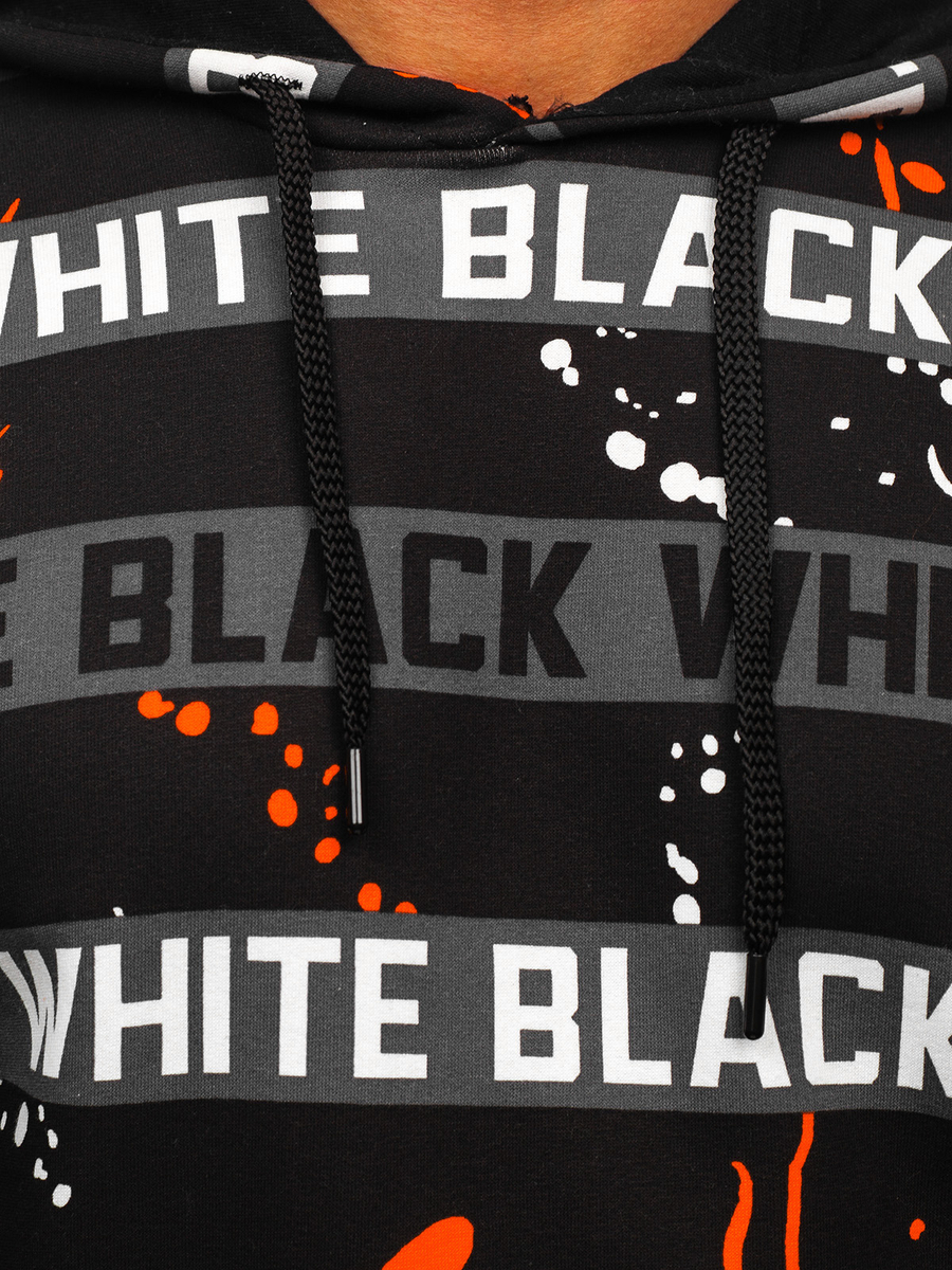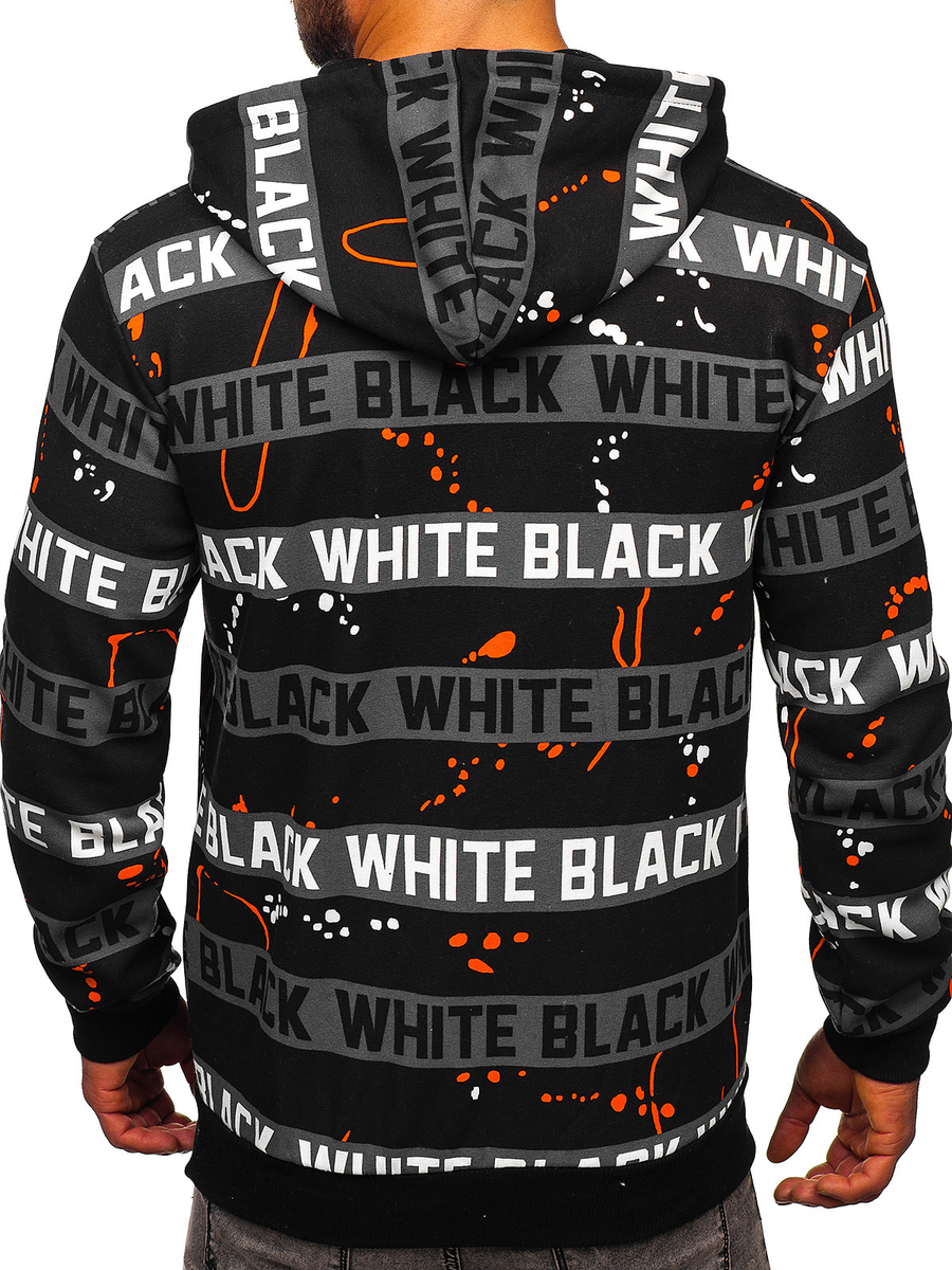 A felhasználók véleménye Férfi pulcsi nyomattal és kapucnival fekete-narancssárga színben Bolf 141034
