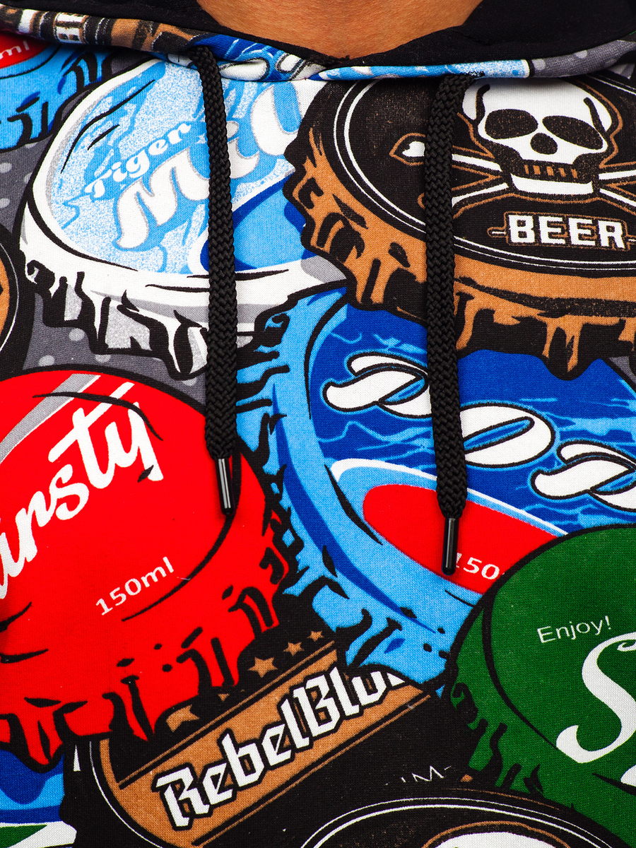 Mintás férfi pulcsi kapucnival multicolor -Bolf 141031- nagyszerű választás azoknak a férfiaknak, akik értékelik a divatos megjelenést és a kényelmet. A pulcsi teljes felületén eredeti, sokszínű nyomattal rendelkezik, ennek köszönhetően nyeri el egyedi karakterét. Az ujjak és a pulcsi alsó része praktikus passzéval rendelkezik. Ez a modell - remek ajánlat lehet az aktívan élő férfiaknak. Megfelelő edzésre, jogginghez, vagy városi kiruccanásra. A nagyon jó minőségű anyagnak köszönhetően rendkívül kényelmes. Állítsd össze a sportos lookot melegítőnadrággal és széldzsekivel. A termék sokoldalúsága azt is lehetővé teszi, hogy olyan hétköznapi stílust alkoss, amelyet akkor is használhatsz, ha kiruccanásra készülsz a barátokkal vagy egy hétvégi kirándulás során. Jól párosítható farmerral és farmerdzsekivel, egyúttal létrehozva az időtálló stilizációt.