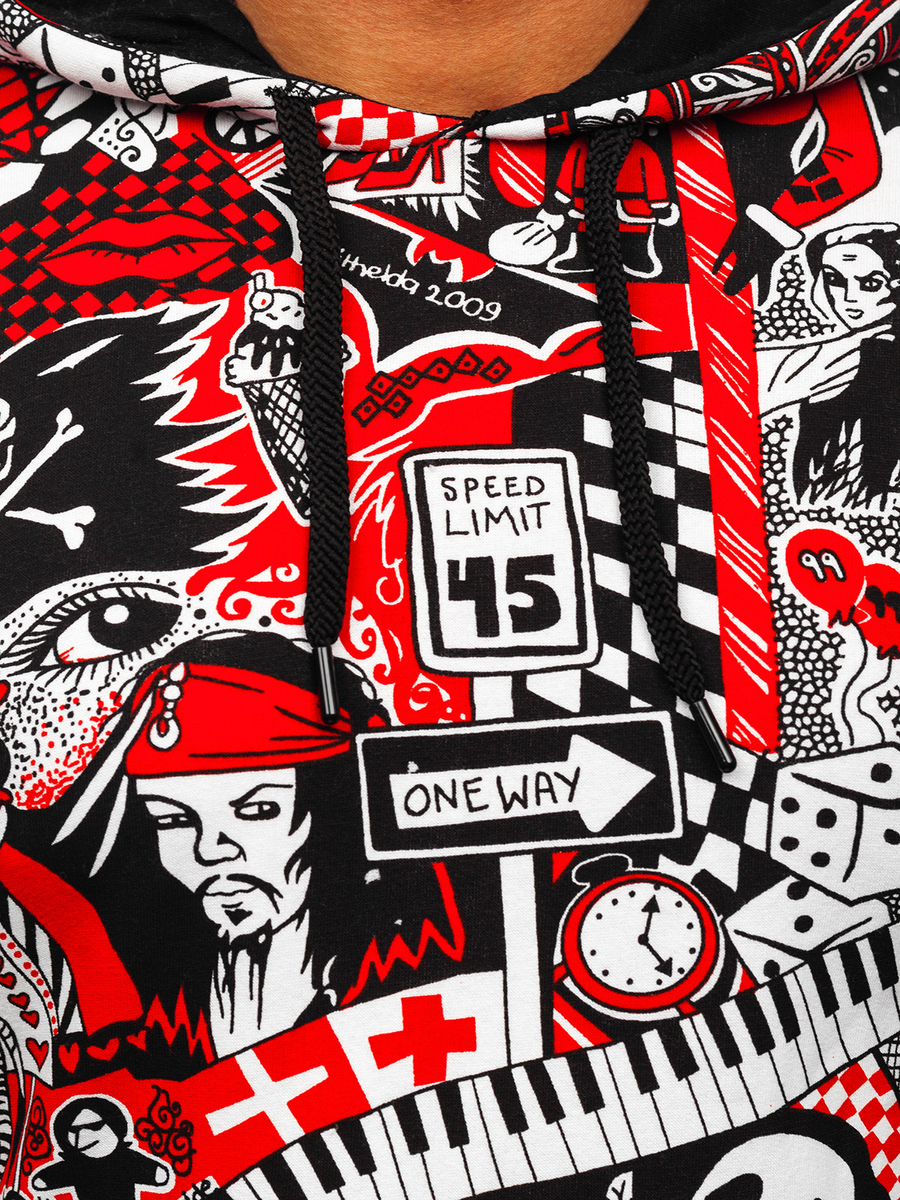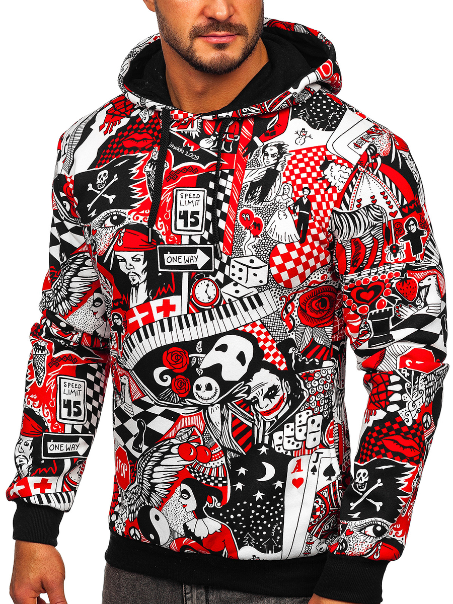 A felhasználók véleménye Férfi pulcsi nyomattal és kapucnival piros színben Bolf 141035