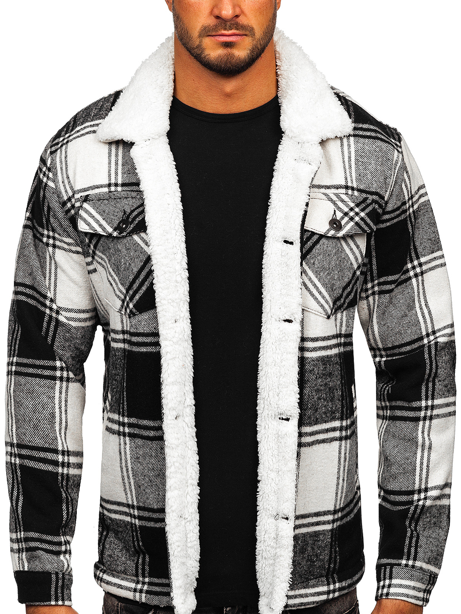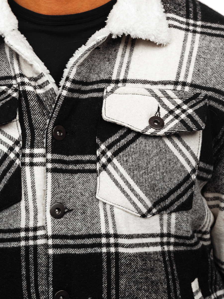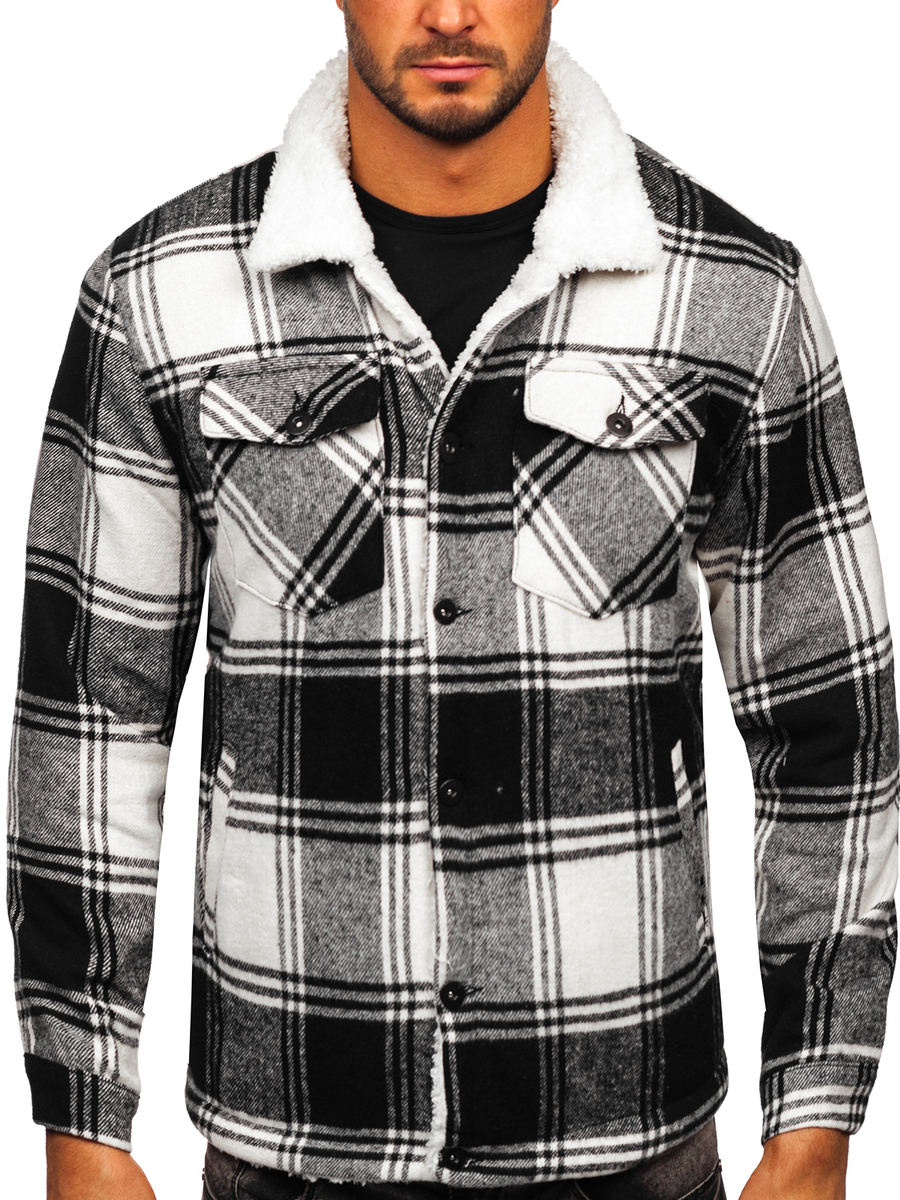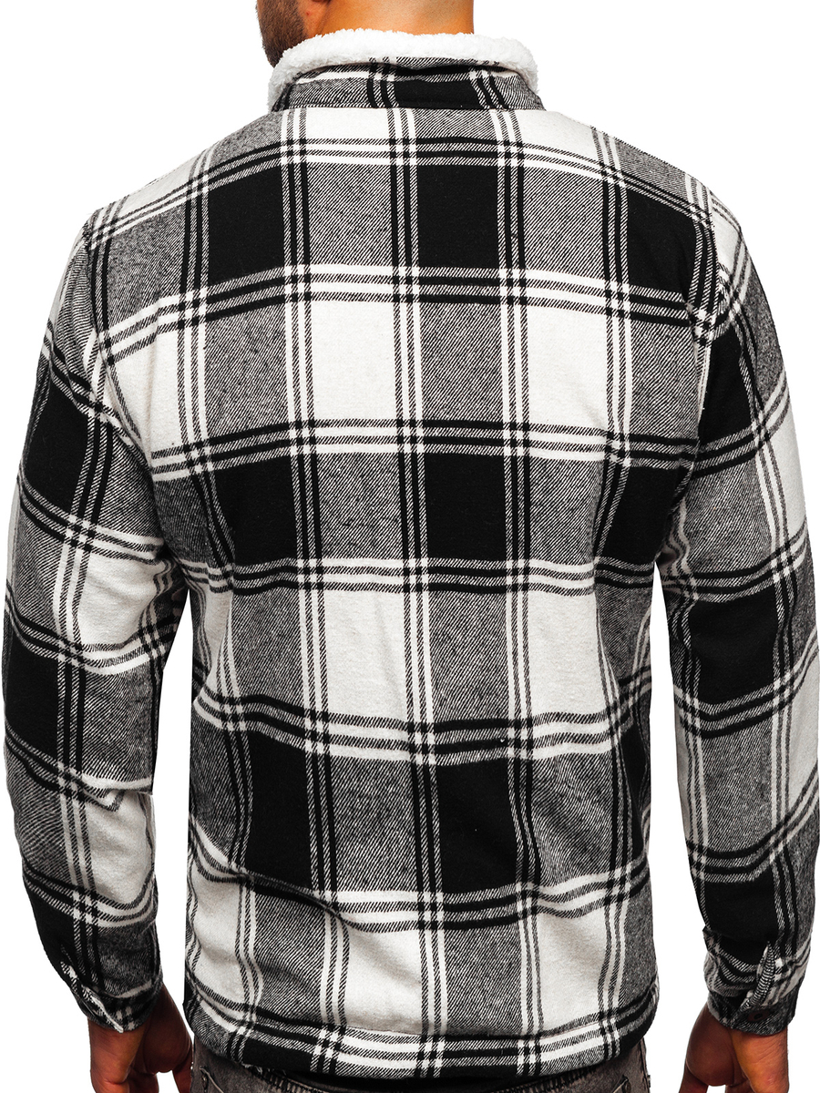 A felhasználók véleménye Fekete flanel átmeneti kockás férfi dzseki Bolf 6548