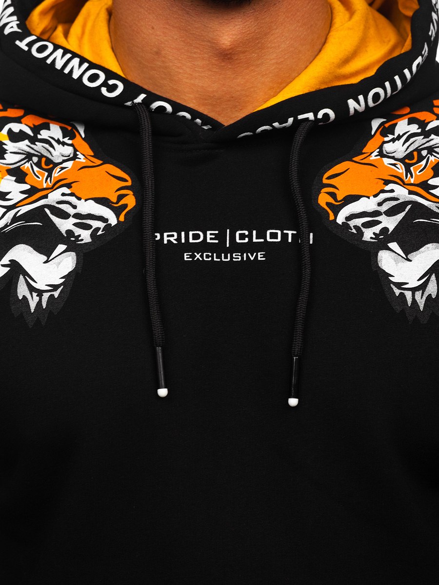 A fekete színű, férfi pulcsi nyomattal és kapucnival -Bolf 6287- egy olyan termék, amely évszaktól függetlenül tökéletesen megállja a helyét. Klasszíkus szabású pulcsi, kétrétegű, állítható kapucnival rendelkezik. A pulcsi alsó része és az ujjai passzéval vannak ellátva, ennek köszönhetően melegen tart és védelmet nyújt a szél ellen a hűvösebb napokon. A pulcsinak kényelmes kenguru típusú zsebe van. Kitűnik a dekoratív nyomatta, mely feldob bármilyen stilizációt. Nagyon kellemes tapintású anyagból készült. 70% pamutból és 30% poliészterből készült. Megfelelő sétára, bevásárláskor, vagy a városon kívüli kiruccanásra ismerősökkel. Kombinálhatod melegítőnadrággal is, így nagyszerű outfitet hozhatsz létre szabadtéri tevékenységekhez. A pulcsi a hétköznapokon is nagyszerűen párosítható joggerrel és bőrdzsekivel.