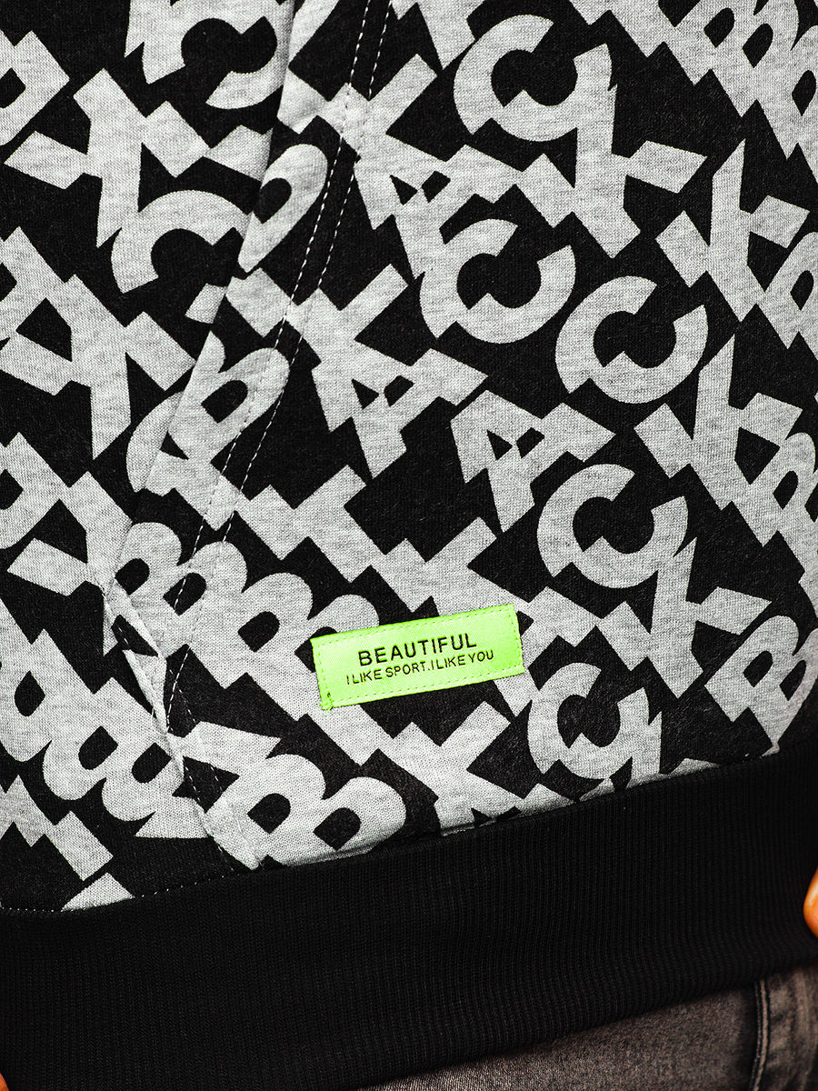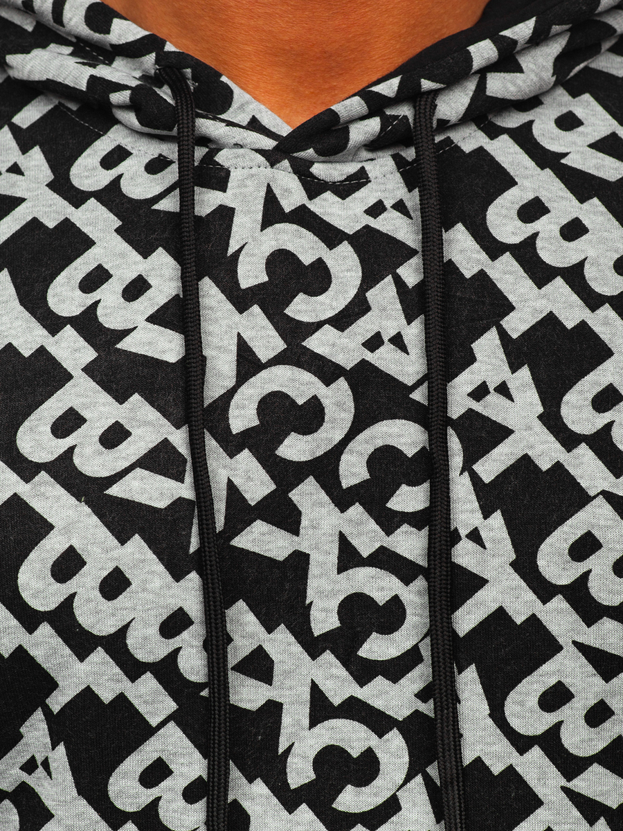 A felhasználók véleménye Fekete-szürke mintás férfi pulcsi kapucnival Bolf HW2320