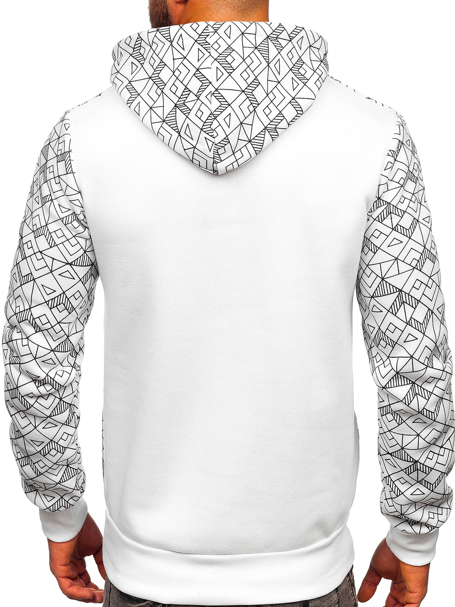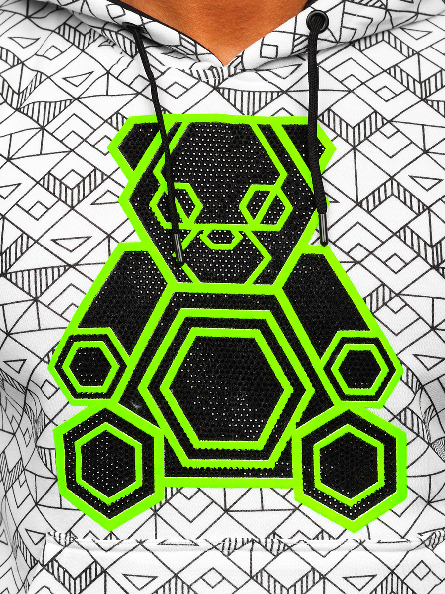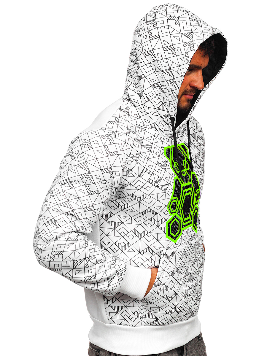 A felhasználók véleménye Fehér kapucnis férfi pulcsi cirkóniás mintával Bolf HM566