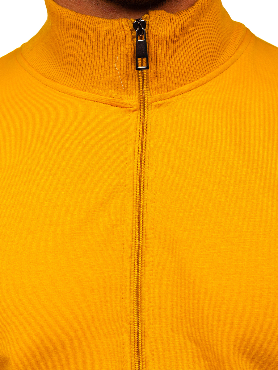 Az sárga színű, nyitható férfi pulcsi állógallérral -Bolf 8756- egy olyan termék, amely évszaktól függetlenül tökéletesen megállja a helyét. Klasszikus szabású, cipzározható pulcsi állógallérral. A pulcsi alsó része és az ujjai passzéval vannak ellátva, ennek köszönhetően melegen tart és védelmet nyújt a szél ellen a hűvösebb napokon. Pulcsi, két zár nélküli, oldalsó zsebbel. Néhány féle színben kapható. A széles színválasztéknak köszönhetően a pulcsit is a stilizációdhoz igazíthatod, nap mint nap. Kellemes tapintású anyagból készült. Dekoratív eleme a nyomat az ujjakon. Megfelelő sétára, bevásárláskor, vagy a városon kívüli kiruccanásra ismerősökkel. Viselheted továbbá edzésre is. Kombinálhatod melegítőnadrággal is, így nagyszerű outfitet hozhatsz létre szabadtéri tevékenységekhez. A pulcsi a hétköznapokon is nagyszerűen párosítható joggerrel és pólóval.