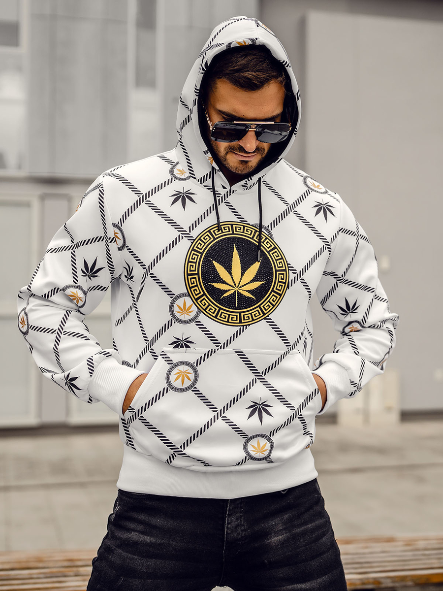 A felhasználók véleménye Fehér mintás férfi kapucnis pulcsi Bolf HM630