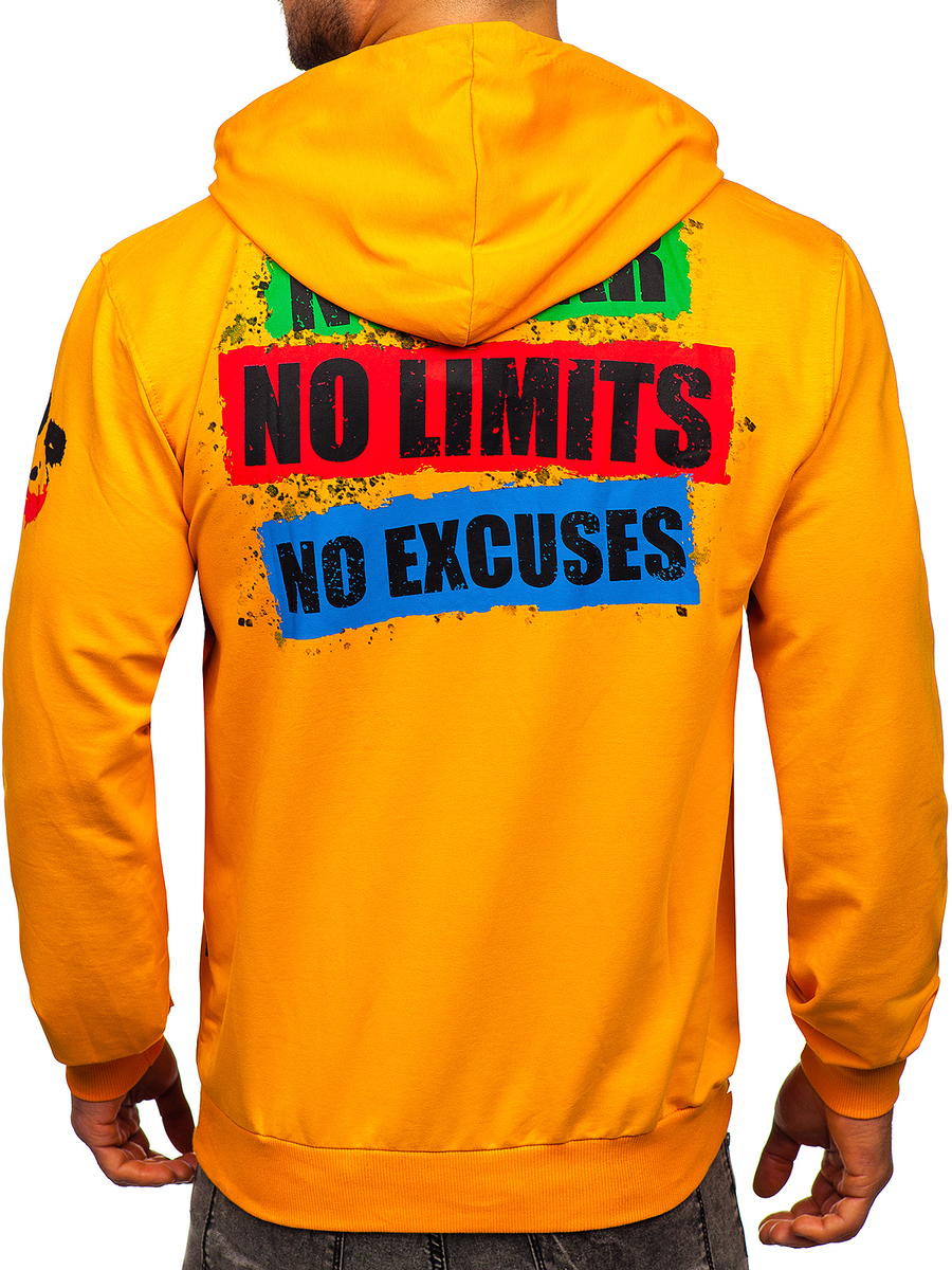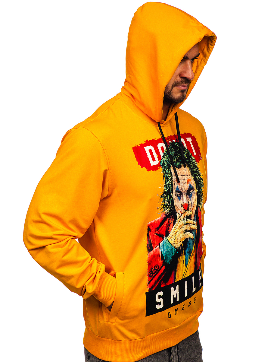 A felhasználók véleménye Narancssárga mintás férfi pulcsi kapucnival Bolf 6384