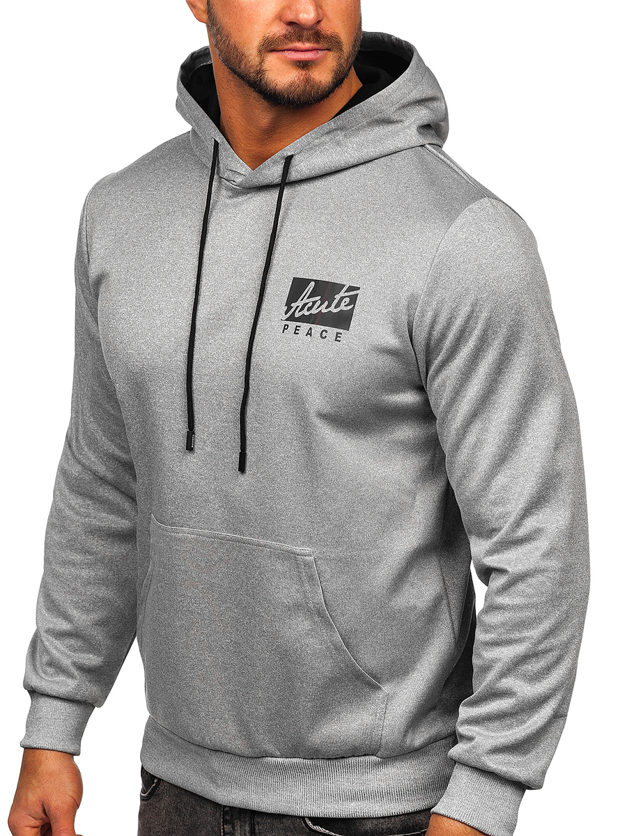 A felhasználók véleménye Szürke mintás férfi pulcsi kapucnival Bolf HY971
