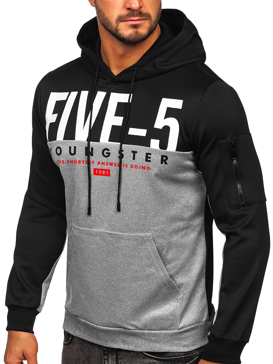 Mintás férfi pulcsi kapucnival szürke színben -Bolf HY972- nagyszerű választás azoknak a férfiaknak, akik értékelik a divatos megjelenést és a kényelmet. Pulcsi eredeti nyomattal az elején, ennek köszönhetően nyeri el egyedi karakterét. Három színben elérhető. Az ujjak és a pulcsi alsó része praktikus passzéval rendelkezik. A pulcsi kényelmes kenguru típusú zsebbel és kétrétegű, állítható kapucnival rendelkezik. Ez a modell - remek ajánlat lehet az aktívan élő férfiaknak. Nagyszerűen mutat majd az edzésken, jogging közben és a sporttevékenységek során a szabad levegőn. A nagyon jó minőségű anyagnak köszönhetően rendkívül kényelmes. Hogyha értékeled a kényelmet, akkor párosíthatod melegítővel és mellénnyel. A termék univerzális, ami lehetővé teszi, hogy olyan casual stílust alkoss, amelyet akkor is használhatsz, ha kiruccanásra készülsz a barátokkal vagy egy hétvégi kirándulás során. Párosítsd farmerral,pólóval és bőrdzsekivel.