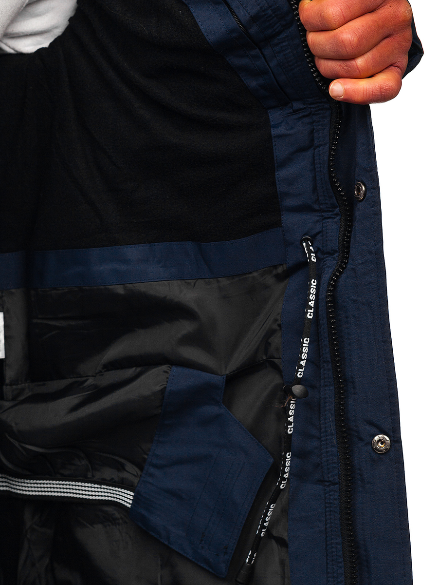 Gránátkék színű, téli, sportos, férfi sídzseki -Bolf 6400- klasszikus módon, cipzárral és patenttal zárható. Álló típusú gallérral, mely cipzározható és patentos, valamint bélelt, 2D-s állíthatósággal rendelkező kapucnival, mely tökéletesen véd a szél és az eső elől. A kapucninál levehető szőrme található. Az idomuló és egyenes szabásának köszönhetően benne mindenki különlegesnek látszik. Dzseki két cipzározható mellzsebbel és két zsebfedős, patentos zsebbel alul. Dzseki, egy patentos zsebbel a bal ujjon és egy cipzározható belső zsebbel rendelkezik.. Az ujjak passzéval és tépőzárral vannak ellátva,, ennek köszönhetően jól idomul az alakhoz és véd a hideg elől.A dzseki hófogó övvel rendelkezik, belülről zsinórral állíthatóMegfelelő sétára, baráti találkozásra vagy városi kiruccanásra. Nagyszerű párosítást alkot farmerralés klasszikus pulóverrel.