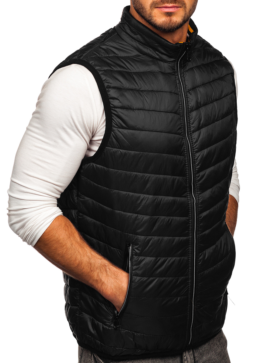 Fekete színű, steppelt férfi mellény kapucnival -Bolf 7103-ideálisan beválik őszi és tavaszi stilizációkban. Cipzározható mellény álló típusú gallérral. Két külső, cipzározható zsebbel és két belső, zár nélküli zsebbel rendelkezik, , amelyekben a legfontosabb tárgyaidat tárolhatod. Az alja és az ujjakon található nyílások rugalmas passzéval vannak ellátva. Néhány féle divatos színben kapható mellény, sportos, egyenes fazonú. Tökéletes hétköznapokra, városi kiruccanásra, találkozásra az ismerősökkel vagy esti sétára. Outfites stilizációt alkot hosszú ujjú felsővel és joggerrel. Nagyszerűen mutat párbanpulcsival és farmerral.