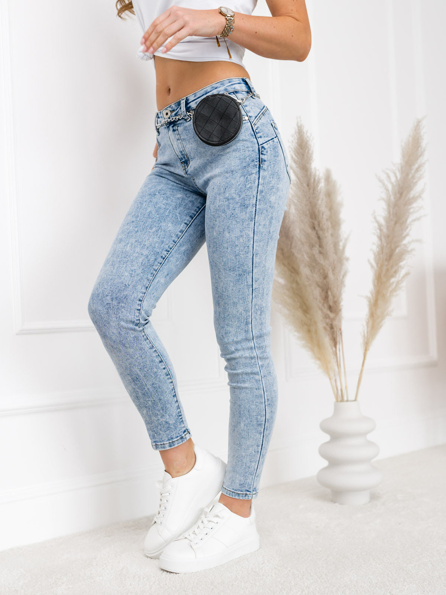 Égszínkék színű, női farmernadrág -Bolf LA692- egy Regular típusú farmer, mely szépen kiemeli a női alakot. Nadrág praktikus zsebekkel, három zsebbel elől és két zsebbel hátul. Divatos árnyékolás a száron különlegessé teszi a stilizációt. Dekoratív táskával és lánccal a szettben. A farmernadrág univerzális alapként szolgálhat hétköznapi stilizációk létrehozásában is. Nagyszerűen mutat séta közben, valamint a bevásárlások során vagy városi kiruccanáson a barátokkal. Nagyszerűen mutat pólóval, bőrdzsekivel vagy pulcsival.
