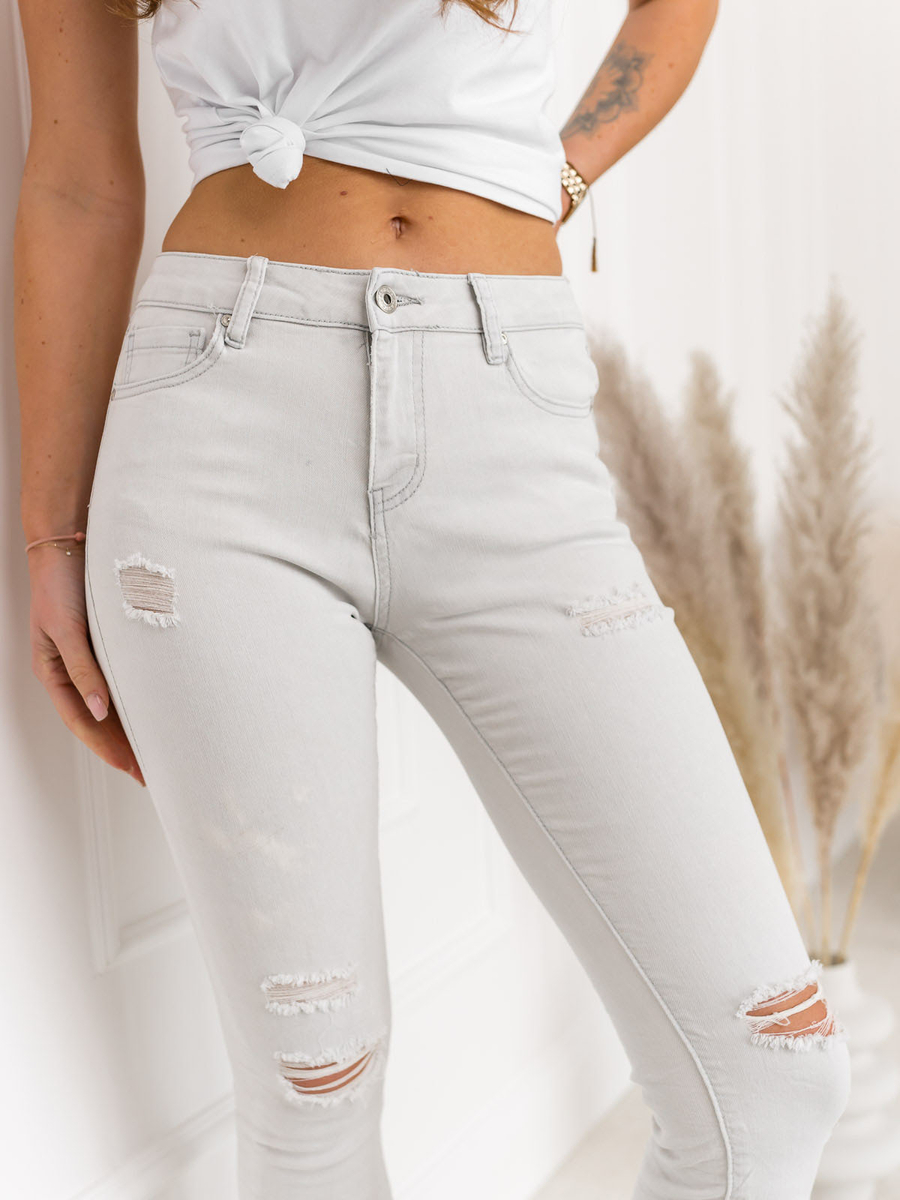 A világosszürke színű női farmernadrág -Bolf WL2119- nagyszerű ajánlat azoknak, akik értékelik a kényelmet és a szabad mozgást. Nadrág öt praktikus zsebbel, három zsebbel elől és két zsebbel hátul. A legmagasabb minőségű anyagból készült termék, ami kényelmessé teszi őt. Ez a modell divatos árnyékolással a szárakon rendelkezik, mely jellegzetessé teszi. A farmernadrág univerzális alapként szolgálhat hétköznapi stilizációk létrehozásában is. Nagyszerűen mutat séta közben, valamint a bevásárlások során vagy városi kiruccanáson a barátokkal. Nagyszerűen mutat párban pólóval, pulcsival vagy pulóverrel. Minden ilyen párosítással könnyen lehetséges olyan egyedi kinézetet kreálni, mely különféle helyzetekben is megállja a helyét.
