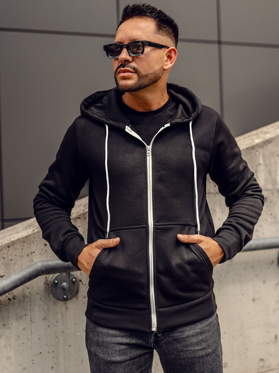 Fekete színű, nyitható férfi pulcsi kapucnival, Bolf HW2787, egy must have minden férfi szekrényében. Cipzározható pulcsi állógallérral és kapucnival. A pulcsi ujjai passzésak, ennek köszönhetően a pulcsi jól idomul az alakhoz.A két oldalsó zseb praktikussá teszi.. A legmagasabb minőségű anyag (65% pamut és 35% poliészter) kényelmet biztosít a hétköznapi stilizációkban. Nagyszerűen megállja a helyét melegítőnadrággal párosítva, Sportos outfitet biztosít. Viselheted pólóval, joggerrel és bőrdzsekivel, univerzális kinézetet biztosít..