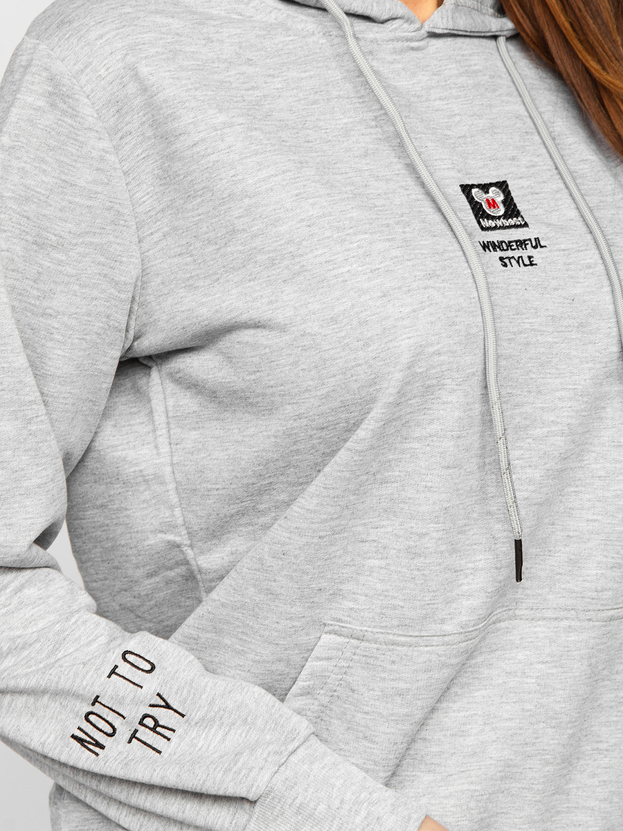 A felhasználók véleménye Szürke női mintás kapucnis pulcsi Bolf HL9265