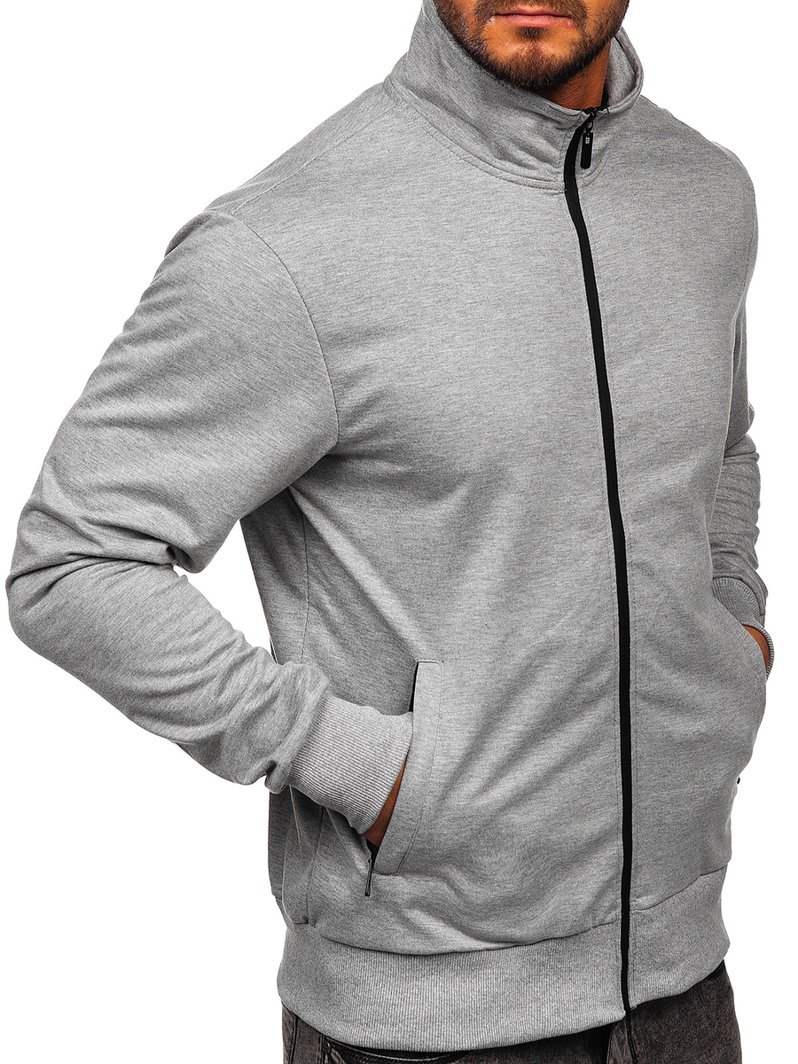 A felhasználók véleménye Szürke nyitható férfi pulcsi kapucni nélkül Bolf B067