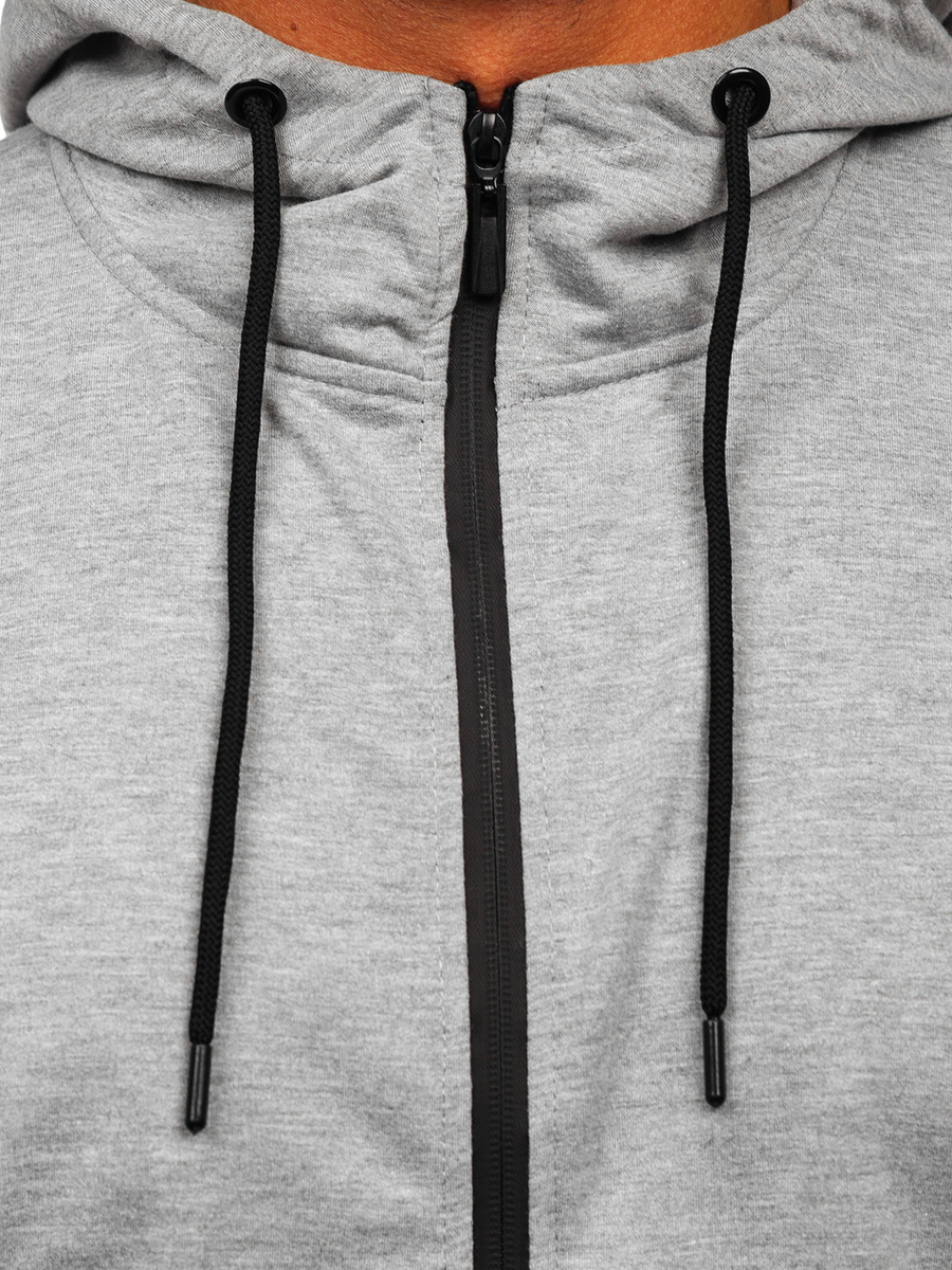 Szürke színű, nyitható férfi pulcsi kapucnival - Bolf B025 - azoknak a férfiaknak ajánlott, akik értékelik az egyszerűséget és a minimalizmust a hétköznapi viseletben is. Az alsó rész és az ujjak passzéval vannak ellátva, ennek köszönhetően nagyszerűen alakra szabott. A kiváló minőségű anyaga (75% pamut és 25% poliészter) kényelmet biztosít viselés közben.Három kifinomult színben elérhető. A sportos stílusú termék lehetővé teszi számos divatos stilizáció létrehozását. Egy igazi must have darabja a férfi ruhásszekrénynek. Állítsd össze a sportos lookot melegítőnadrággal és sportdzsekivel. Casual kinézetet alkothatsz, ha farmerral és steppelt dzsekivel párosítod.