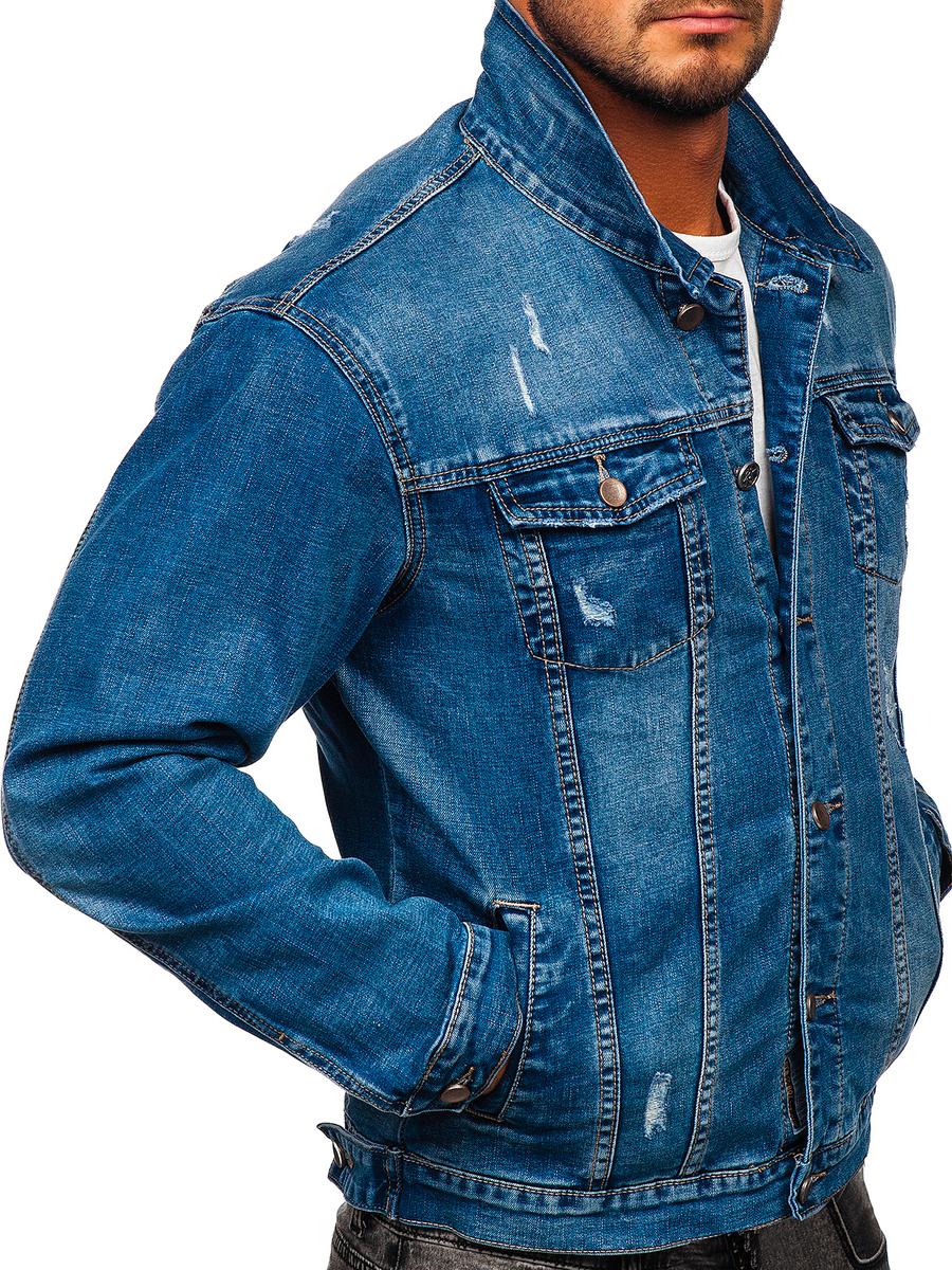 Kék színű, férfi farmerdzseki - Bolf MJ500B - az átmeneti szezon klasszikus darabja. Ez a modell három divatos, univerzális színben kapható. Gombolható dzseki és az ujjai. Négy praktikus zsebbel : két gombolható mellzsebbel és két zár nélküli zsebbel. Divatos árnyékolással és koptatással, mely egyedi, időtálló jellemet biztosít és soha nem megy ki a divatból. Joggerrel és pólóval párosítva ideális stilizációt biztosít a baráti találkozásra.