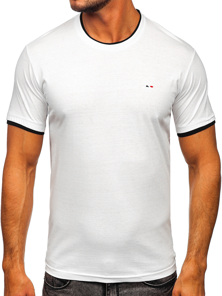 Fehér színű férfi póló, Bolf 14316, klasszikus szabású, magas minőségű anyagból készült. Ez a modell többféle színben kapható – mind visszafogott, mind kifejezőbb árnyalatokban. Mindenkin jól mutat, illeszkedik az alakhoz. Kerek dekoltázzsal. Basic típusú póló, nagyszerű alap különböző érdekes stilizációkhoz. Póló, ideális a hétköznapokra, egy igazi musthave ajánlat minden férfi ruhásszekrényében. Nagyszerűen mutat farmerral, katonai nadrággal vagy joggerrel. Viselheted nyitható kapucnis pulcsival, bőrdzsekivel vagy bomber dzsekivel.