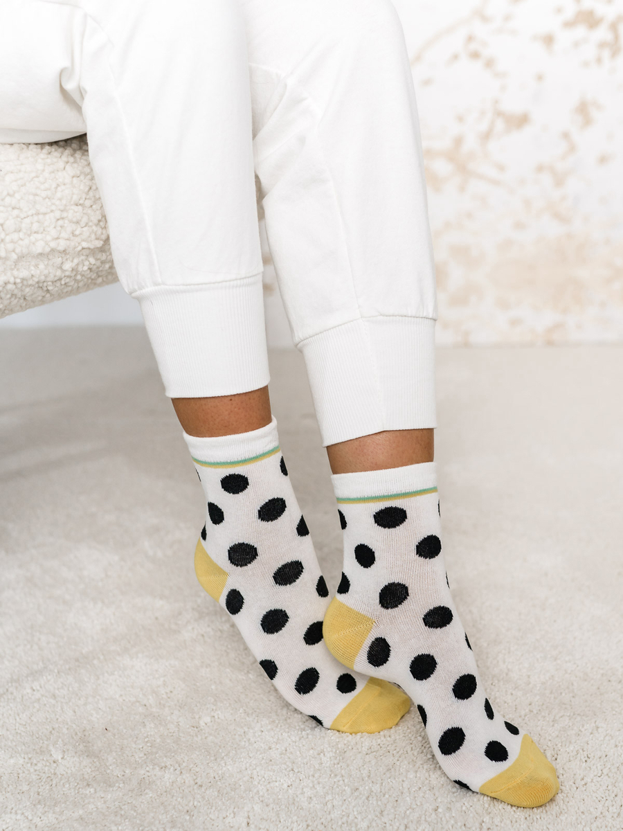 A Bolf X20349-5P multicolor női zokni bármilyen stilizációt feldob, és gondoskodik a lábadról. 100% pamutból készült. A zokni tökéletesen illeszkedik a lábfejhez és kényelmes viseletet biztosít a cipőben járás közben. A felső részén található bordázott passzé megakadályozza a lecsúszást és egyúttal garantálja, hogy jobban illeszkedik a lábfejhez. Nagyszerűen passzol bármilyen stilizációhoz és bármilyen alkalomhoz. Jól párosítható farmerral és pulóverrel vagy sport együttessel és sportcipővel. A szettben 3 pár zokni található különböző színekben és mintákkal.