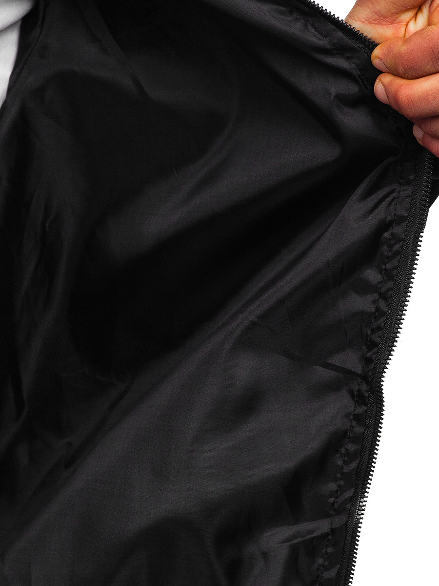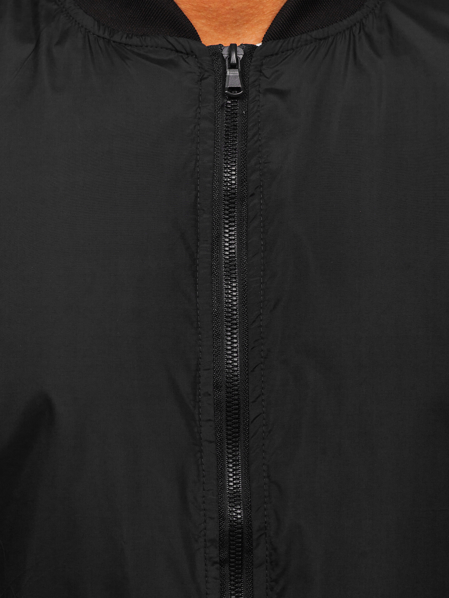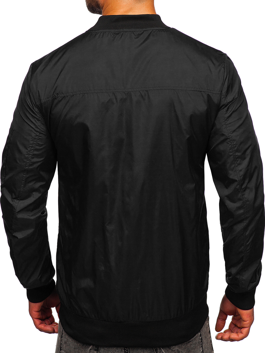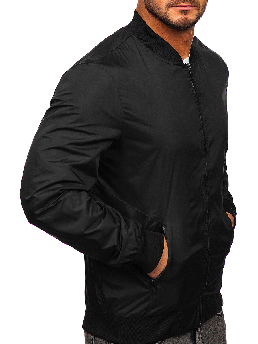Fekete színű, átmeneti, férfi bomber dzseki -Bolf 8M97- egy őszi és tavaszi klasszikus. Ez a dzseki cipzárral zárható. álló típusú gallérral rendelkezik, passzéval. Az ujjai és az alsó része rugalmas szegéllyel van ellátva, ennek köszönhetően a dzseki jól idomul az alakhoz. Bomber jacket típusú dzseki, két külső cipzározható zsebbel, amelyekben a legfontosabb tárgyaidat tárolhatod. Az univerzalitásnak köszönhetően nagyszerűen mutat sportos és casual outfitekben. Sportos kinézetet biztosít pólóval, pulcsival és joggerrel. Nagyszerűen mutat casual stílusban is, farmerral és pulóverrel .