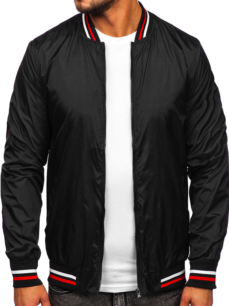 Fekete színű, átmeneti, férfi bomber dzseki -Bolf 8M96- egy őszi és tavaszi klasszikus. Bomber típusú dzseki, cipzárral zárható, álló típusú gallérral és passzéval rendelkezik. Az ujjai és az alsó része passzésak, ennek köszönhetően jól idomul az alakhoz, véd a hideg elől. Bomber dzseki két külső, zár nélküli zsebbel, amelyekben a legfontosabb tárgyaidat tárolhatod. Kifejezetten kényelmes dzseki, nagyszerűen passzol a sportos és a hétköznapi stilizációkhoz. Állítsd össze a saját ideális, sportos outfited pulcsival és melegítőnadrággal. Hozz létre egy saját egyedi stilizációt egy farmer és egy pulóver párosításával..