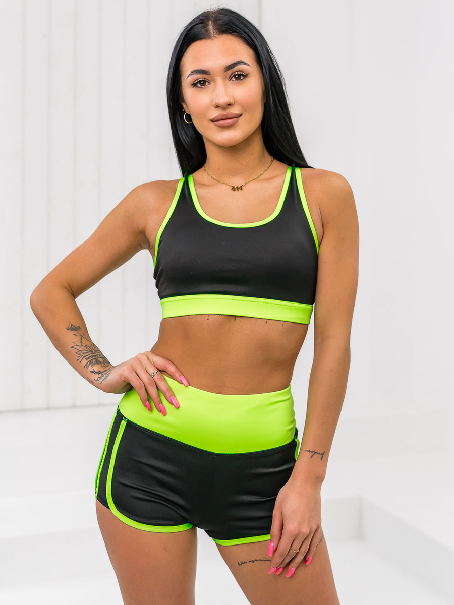 Fekete-sárga színű, kétrészes, női tréning szett - Bolf XL011 -, egy különleges melegítő szett, ideális nyárra! Egy sportmelltartót és egy rövidnadrágot tartalmaz. A rövidnadrág állítható derékban szűkítővel. Sportos jelleget az egyenes, testhezálló fazon biztosít. A melltartó betétekkel és alul passzéval rendelkezik, ennek köszönhetően tökéletesen idomul a női alakhoz. Finom, kellemes tapintású anyagból készült termék. A melltartó és a rövidnadrág jól párosítható különböző ruhadarabokkal, ami széles lehetőségeket kínál a mindennapi stilizációk létrehozásához. A szett nagyszerűen mutat pulcsival, sportdzsekivel vagy mellénnyel. Pompásan mutat, egy nélkülözhetetlen sportos outfit lehet!