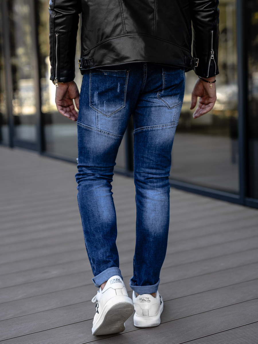 Kék színű, regular fit, férfi farmernadrág - Bolf MP0050B - a klasszikus, időtálló divat rajongói számára ajánlott. Gombolható farmer. Ez a modell két zsebbel elöl és két zseb hátul rendelkezik. Elöl még egy kis dekoratív zseb található. A legmagasabb minőségű anyagból készült, ennek köszönhetően rendkívül kellemes tapintású. A farmernadrág kényelmes és tökéletesen idomul az alakhoz, az egyik legnépszerűbb nadrág fazon. Karakteressé a divatos árnyékolások és koptatások teszik, mindig jól mutat! Ideális párosítást biztosít pulcsival, pólóval vagy inggel.
