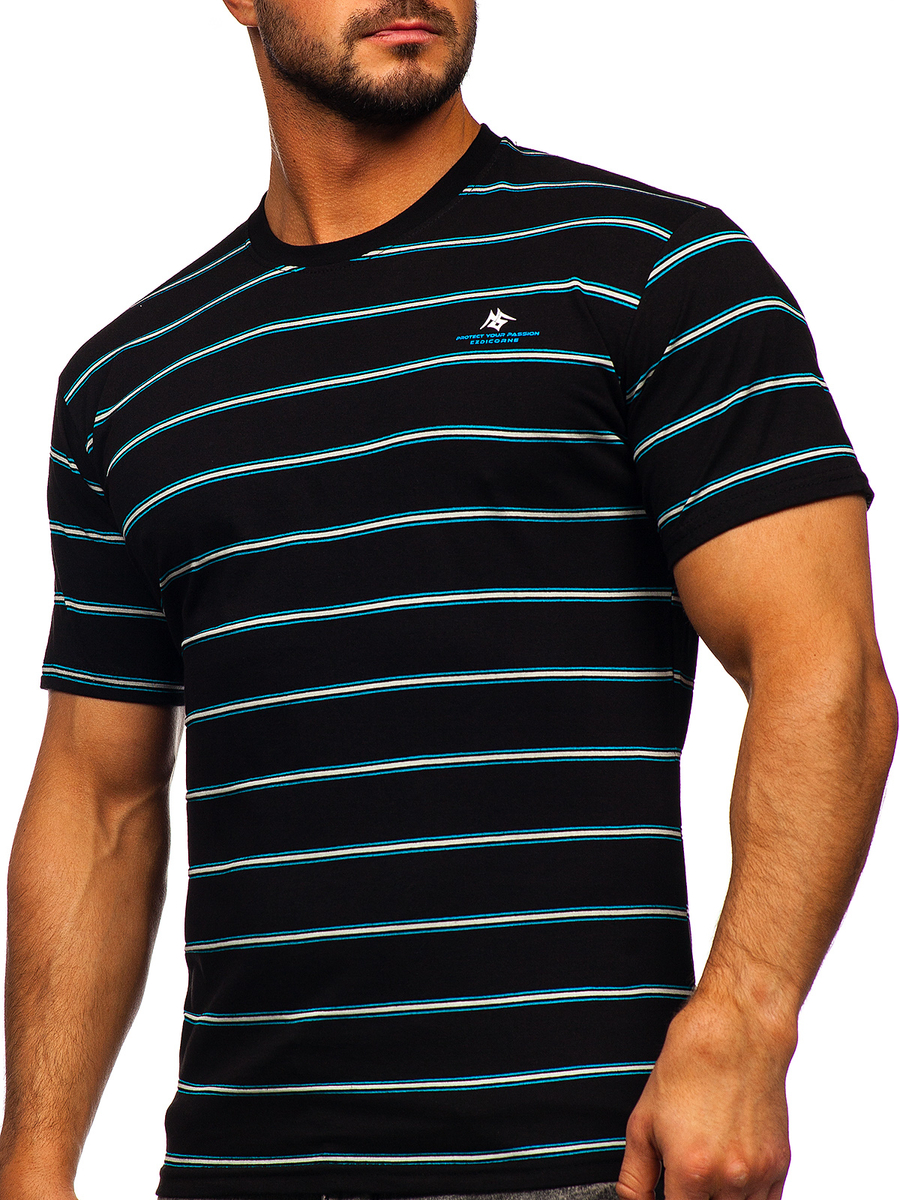A fekete színű férfi póló -Bolf 14952- egy nagyszerű választás azoknak a férfiaknak, akik értékelik a klasszikus stílust és a funkcionalitást a hétköznapi stilizációkban is. Nyolc színben kapható, ennek köszönhetően passzol különféle színű stilizációhoz. Egyenes szabású és kerek dekoltázsú póló, ideálisan alakra szabott. 100%-ban pamutból készült termék, ami kényelmessé teszi őt. Tökéletes mind sportoláshoz, mind a hétköznapi stílushoz. Egy baráti összejövetelen viselheted farmerral és bőrdzsekivel. Sportos outfitet alkothatsz melegítőnadrággal és pulcsival.