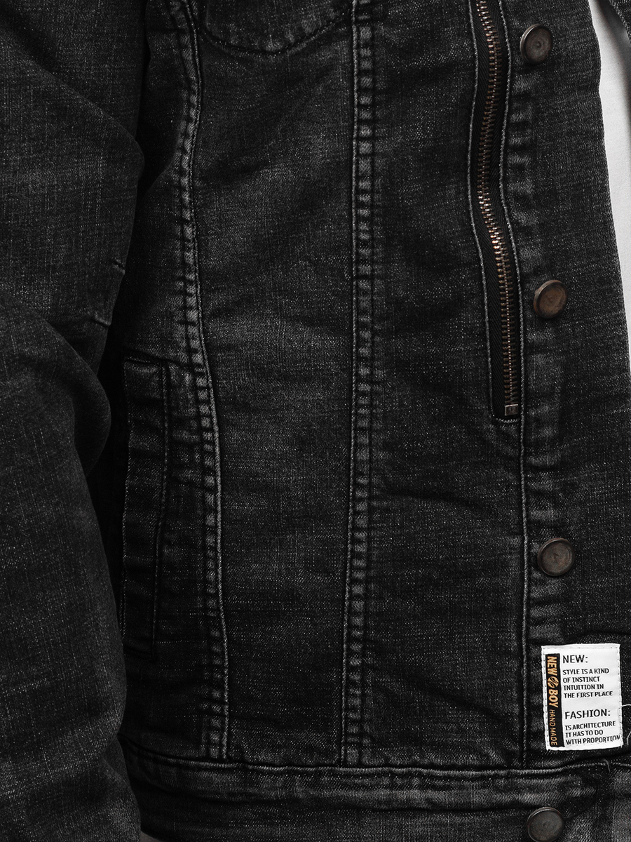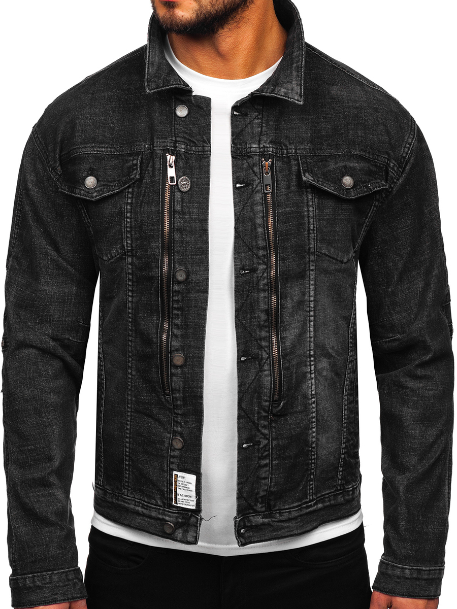 Fekete színű, férfi farmerdzseki - Bolf MJ508N - egy őszi must have minden férfi ruhásszekrényében. Gombolható dzseki, állógallérral rendelkezik. Divatos árnyékolással a lábszáron és dekoratív cipzárral, mely egyedi, divatos és időtálló jellemet biztosít. További praktikus eleme a két gombolható zseb és a két oldalsó zár nélküli zseb. A vásárlóink által kedvelt egyenes szabása miatt jól illeszkedik az alakhoz. Gombolható ujjakkal. Fantasztikusan beválik a hosszú esti sétákon, a baráti találkozásokon vagy a spontán kirándulásokon. Farmerdzseki, tökéletes párosítást alkot pulcsival és joggerrel.