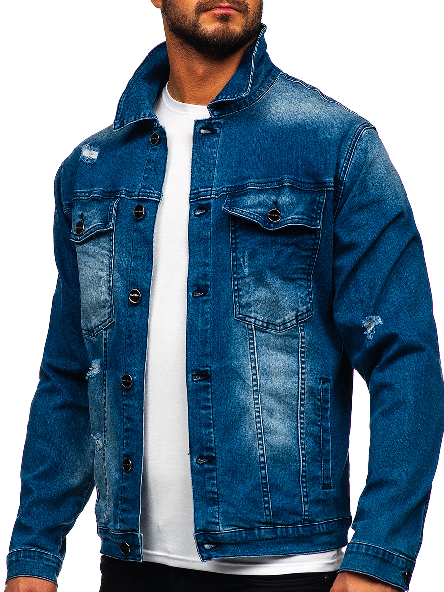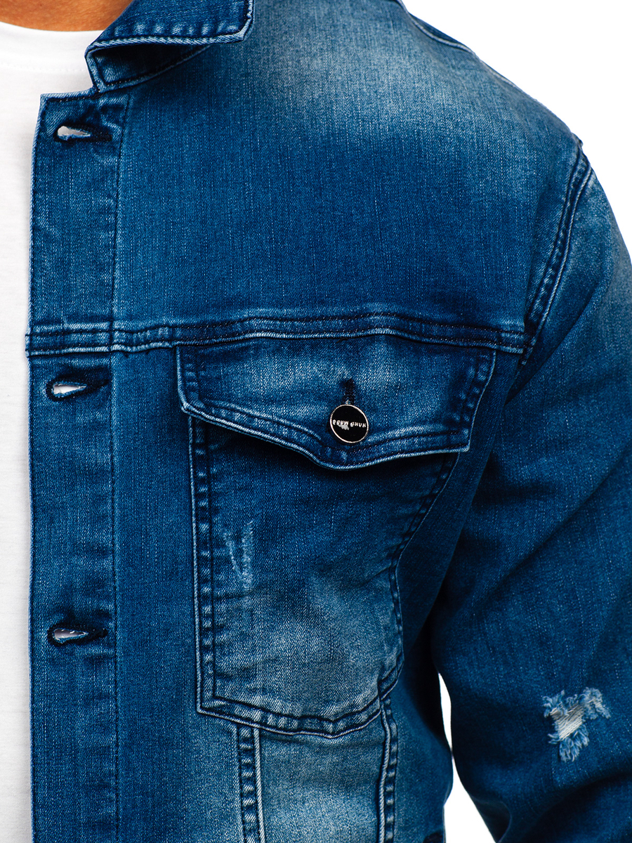 Világoskék színű, férfi farmerdzseki - Bolf MJ506B - egy igazi must have minden férfi ruhásszekrényében. Divatos koptatás és gombbal állítható slicc a dzseki alján különlegessé teszi. Gombolható, állógallérral rendelkezik. További praktikus eleme a két gombolható zseb és a két oldalsó zár nélküli zseb. A vásárlóink által kedvelt egyenes szabása miatt jól illeszkedik az alakhoz. Gombolható ujjakkal. Fantasztikusan beválik a hosszú esti sétákon, a baráti találkozásokon vagy a spontán kirándulásokon. Farmerdzseki, tökéletes párosítást alkot pulcsival és joggerrel.