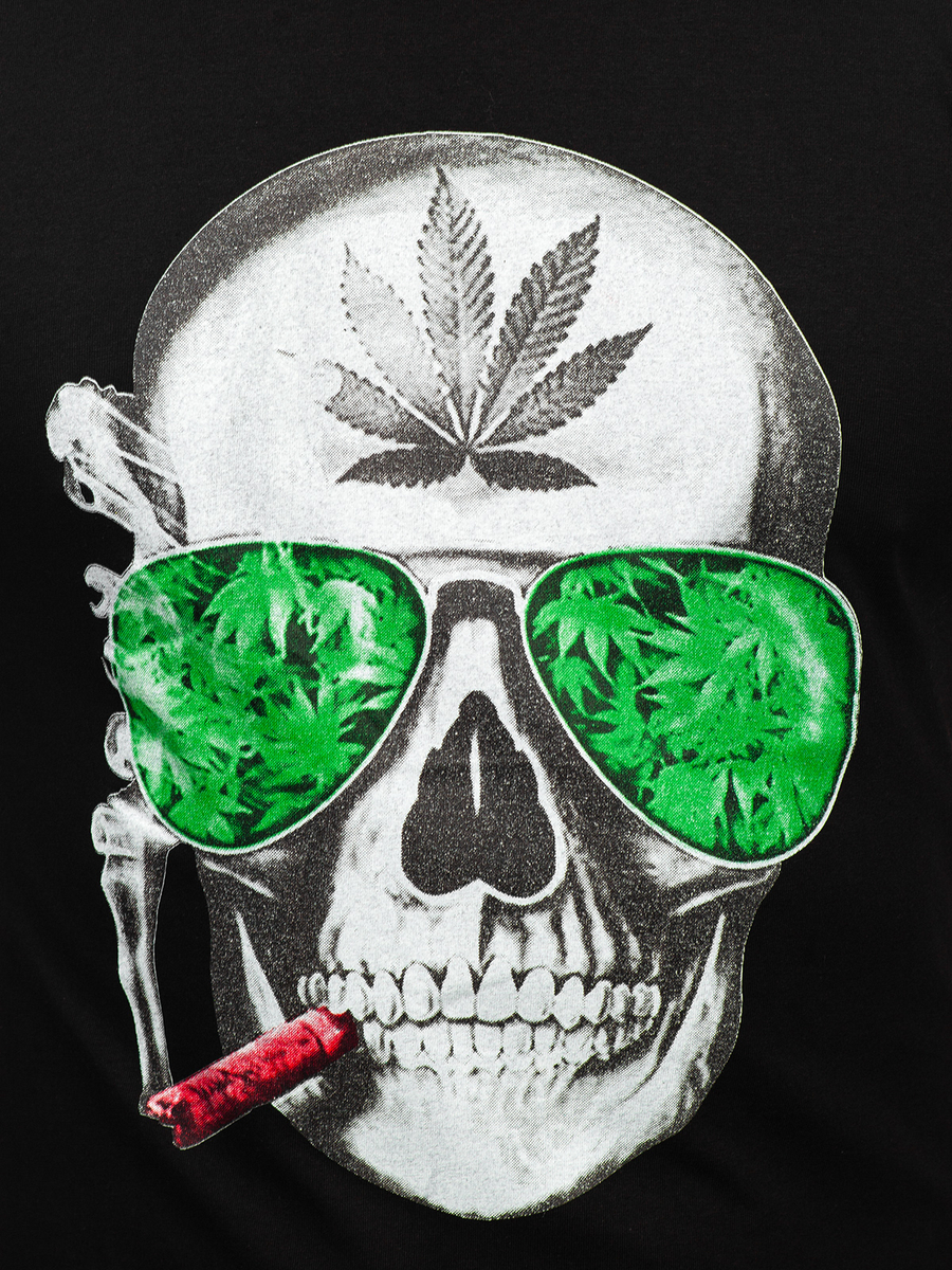 Férfi póló mintával -Bolf Y70019- fantasztikus választás azoknak a férfiaknak, akik értékelik az eredetiséget és szeretnek feltűnően öltözködni. Magas minőségű anyagból készült, ennek köszönhetően kényelmes viseletet biztosít, az egyedi nyomat elöl különlegessé teszi a pólót. A fekete szín eleganciát és sokoldalúságot biztosít, ennek köszönhetően ideális választás lehet különféle stilizációhoz. Megfelel hétköznapokra, bulikra, koncertekre, de casual viselet elemeként is megállja a helyét. Passzol farmerhoz, katonai nadrághoz, vagy rövidnadrághoz.