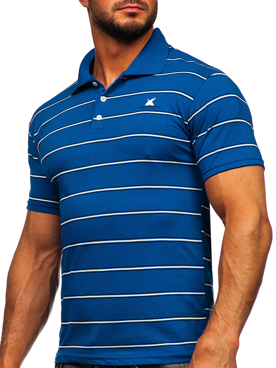 Kék színű, férfi galléros póló -Bolf 14954- nyolc féle színben elérhető. A széles színválasztéknak köszönhetően jól passzol különböző ruhákhoz. Póló, divatos csíkos mintával a teljes felületen. Egyenes szabású, klasszikus póló, ideálisan alakra szabott. 100%-ban pamutból készült termék, ami kényelmessé teszi őt az alkalomtól függetlenül. A divatos pólót viseld baráti találkozásokkor, családi kiránduláskor, vagy randin. Párosítsd chinó nadrággal. Nagyszerűen mutat lazább stilizációkbanfarmerral és bőrdzsekivel.