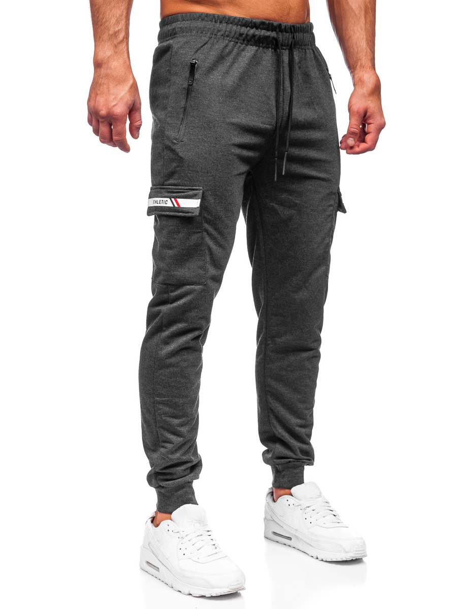 Grafit színű, férfi katonai melegítőnadrág - Bolf JX5063 - a tavasz és az ősz ütős ajánlata. Ez a termék állítható derékban erős szűkítővel és megkötővel, nagyszerűen alakra szabott. Két oldalsó, cipzározható zsebbel és két oldalsó zsebfedős zsebbel dekoratív felirattal. A szár passzés. 65% pamutból, 30% poliészterből és 5% elasztánból készült, a jó minőségű anyagnak köszönhetően nagyon kényelmes. A nadrág utcai stílusa lehetővé teszi a praktikus használatát a hétköznapokon is. Állítsd össze a saját időtálló outfited pólóval és pulcsival.