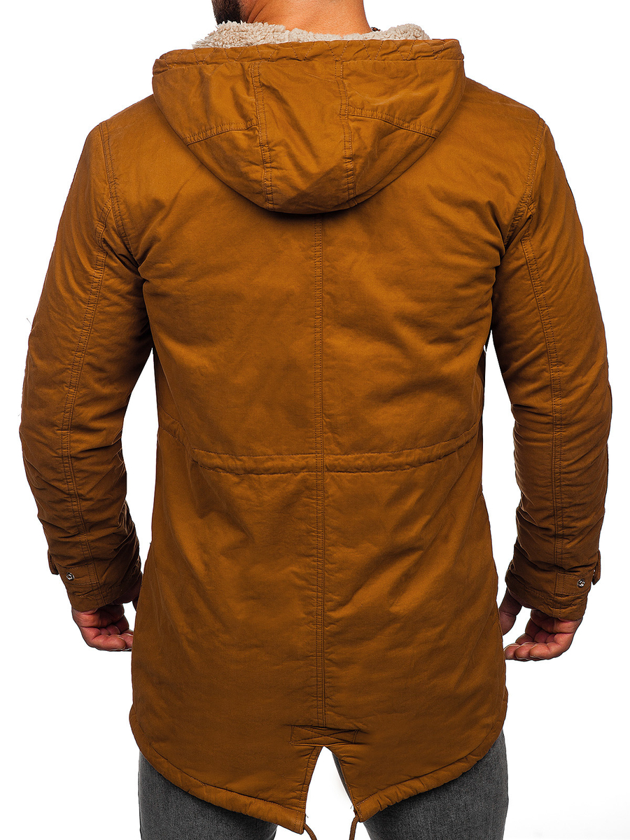 Camel színű, téli, férfi parka dzseki - Bolf EX838 - egy stílusos must have ajánlat minden férfi számára az őszi-téli szezonra. A parka lenyűgöző, és egyúttal jól is mutat a férfi alkaton. Nem csak divatos, de hihetetlenül praktikus és meleg. Cipzározható dzseki patentokkal. Állítható, bélelt kapucni, mely csatlakozik a gallérhoz. A kapucni belülről meleg szőrmével bélelt, mely meleget biztosít a hidegebb napokon. A kabát belülről derékban húzózsinórral állítható, így igényed szerint szabályozhatod hogyan illeszkedjen. Két külső, patentos zsebbel. Az ujjak belülről szűkítővel végződnek, kívülről patenttal állíthatók. A dzseki hátsó része hosszított, ami kényelmet biztosít viselés közben akár a hűvös, téli napokon.