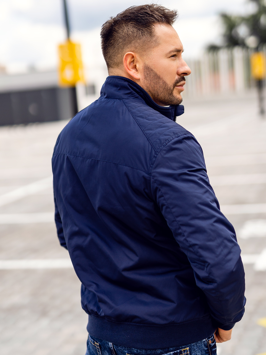Sötétkék átmeneti dzseki a Bolftól. Rövid, divatos, kényelmes, nem helyettesíthető az átmeneti időszakban Sötétkék férfi dzseki, kiemeli a férfi alakot, nagyszerűen passzol a streetes fazonokhoz. Viseld joggerrel, farmerral, divatos inggel.