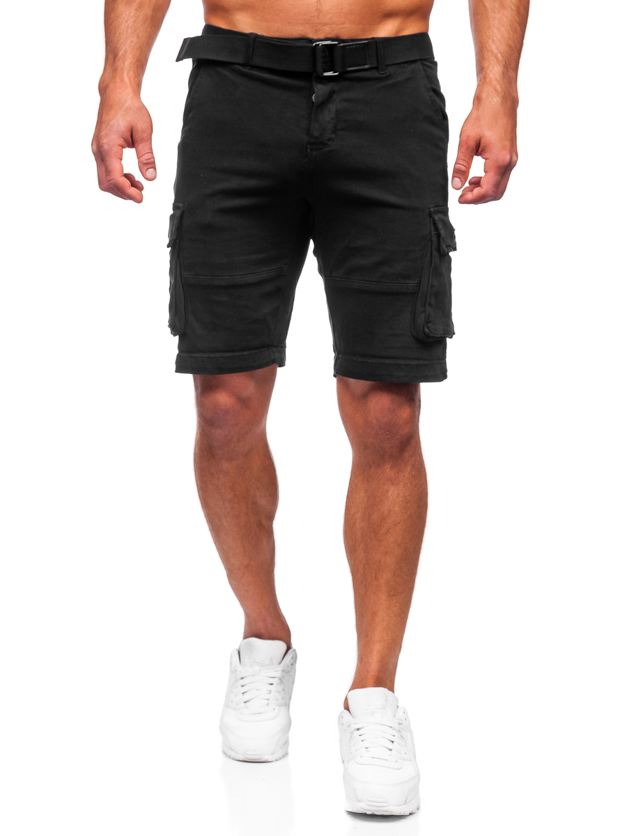 Fekete színű, férfi katonai rövidnadrág övvel- Bolf MP0109NA- a nyári stilizációkban is megállja a helyét. Divatos katonai típusú rövidnadrág, gombolható és praktikus zsebekkel rendelkezik. Két külső zsebbel, két hátsó, gombolható zsebbel és két oldalsó, zsebfedős, gombolható zsebbel. A legmagasabb minőségű anyagból készült : 98% pamutból és 2% elasztánból.. Divatos, praktikus övvel a szettben, amely feldob minden stilizációt. Állítsd össze az outfited, párosítsda rövidnadrágotpólóval és időtállófarmerdzsekivel!