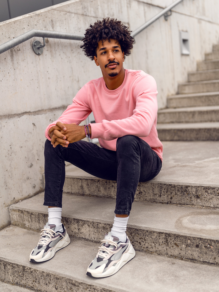 Világos rózsaszín színű, kapucni nélküli férfi pulcsi -Bolf 2001A-, basic kategóriás ajánlatunk. Ez a modell számos, többé-kevésbé intenzív színben is kapható, így számtalan ruhával könnyen összeilleszthető. A pulcsikat kifejezetten a minimalista divatirányzatok rajongóinak számára ajánljuk. Minta nélküli, kényelmes, szépen varrott. Must have a férfi divatos ruhásszekrényében. Az egyszerű, klasszikus, érdekes színű fazonjának köszönhetően ez a pulcsimodell nagyszerűen kiegészít számos hétköznapi és streetes stilizációt. Az ujjak és a pulcsi alsó része széles passzéval ellátva. A termék kellemes tapintású és tartós melegítőanyagból készült.