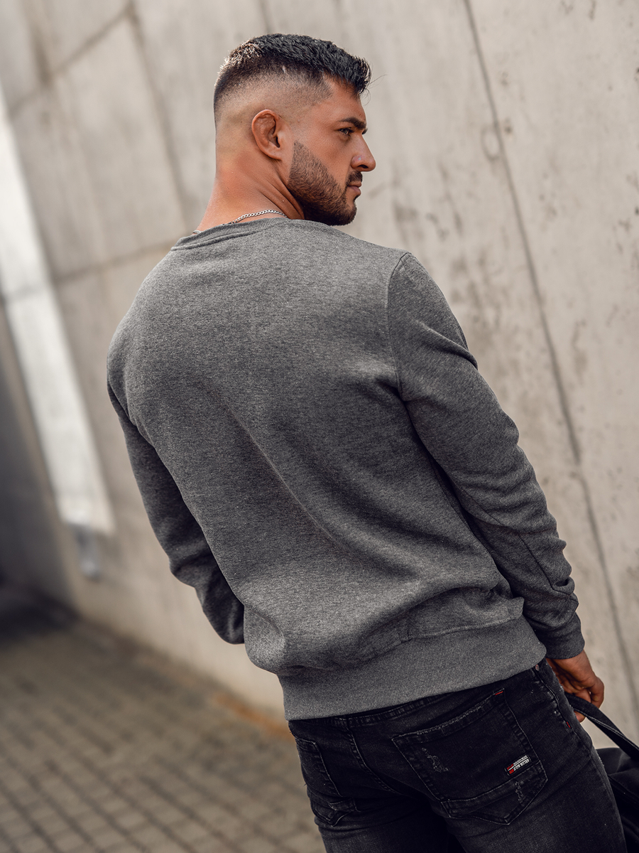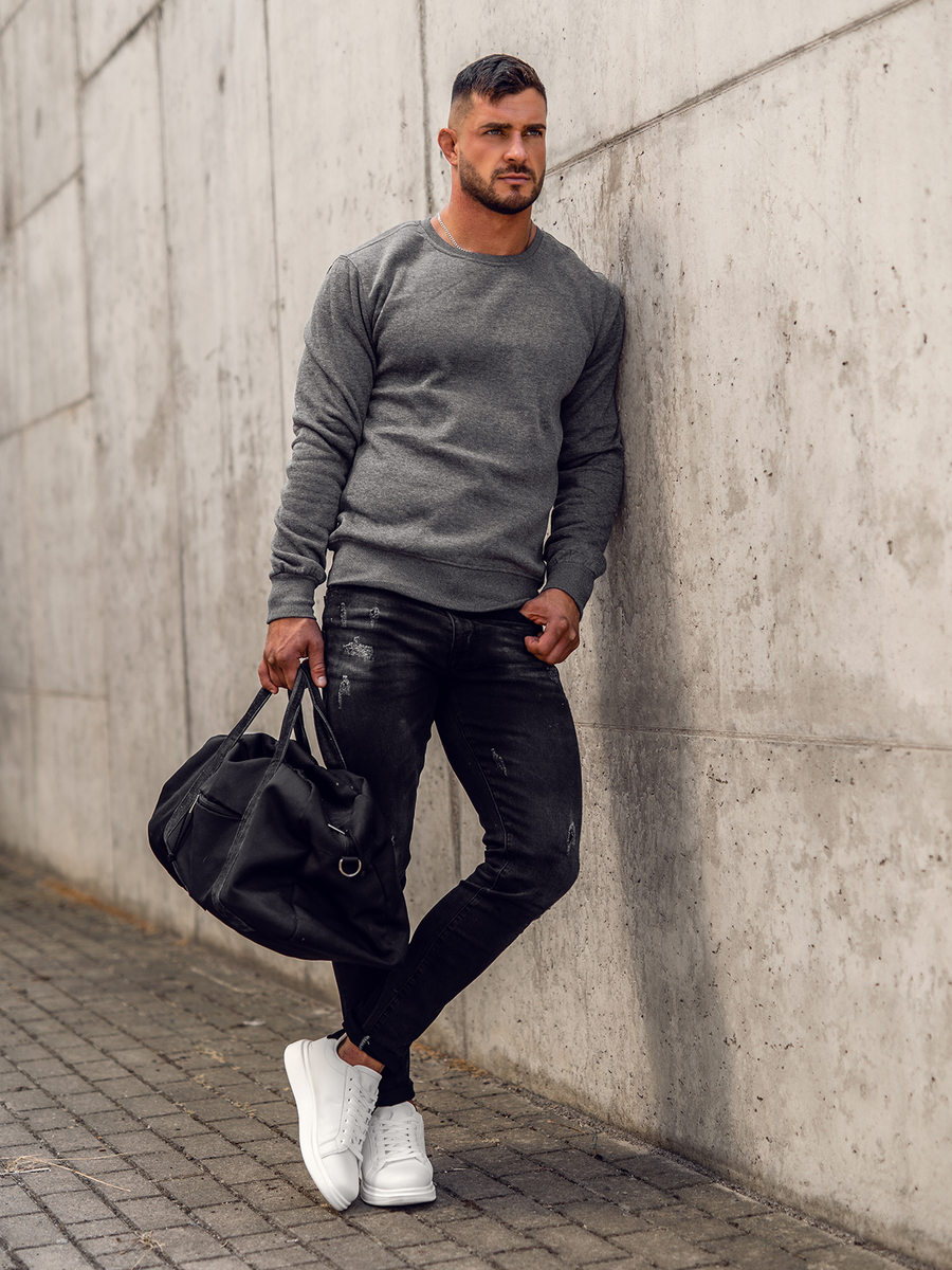 Antracitszürke színű, kapucni nélküli férfi pulcsi -Bolf 2001A-, basic kategóriás ajánlatunk. Ez a modell számos, többé-kevésbé intenzív színben is kapható, így számtalan ruhával könnyen összeilleszthető. A pulcsikat kifejezetten a minimalista divatirányzatok rajongóinak számára ajánljuk. Minta nélküli, kényelmes, szépen varrott. Must have a férfi divatos ruhásszekrényében. Az egyszerű, klasszikus, érdekes színű fazonjának köszönhetően ez a pulcsimodell nagyszerűen kiegészít számos hétköznapi és streetes stilizációt. Az ujjak és a pulcsi alsó része széles passzéval ellátva. A termék kellemes tapintású és tartós melegítőanyagból készült.