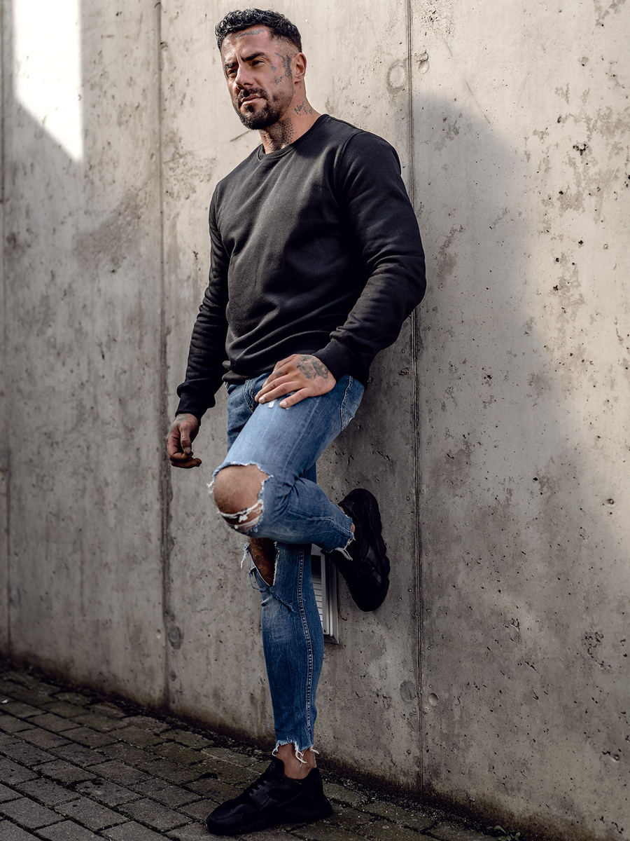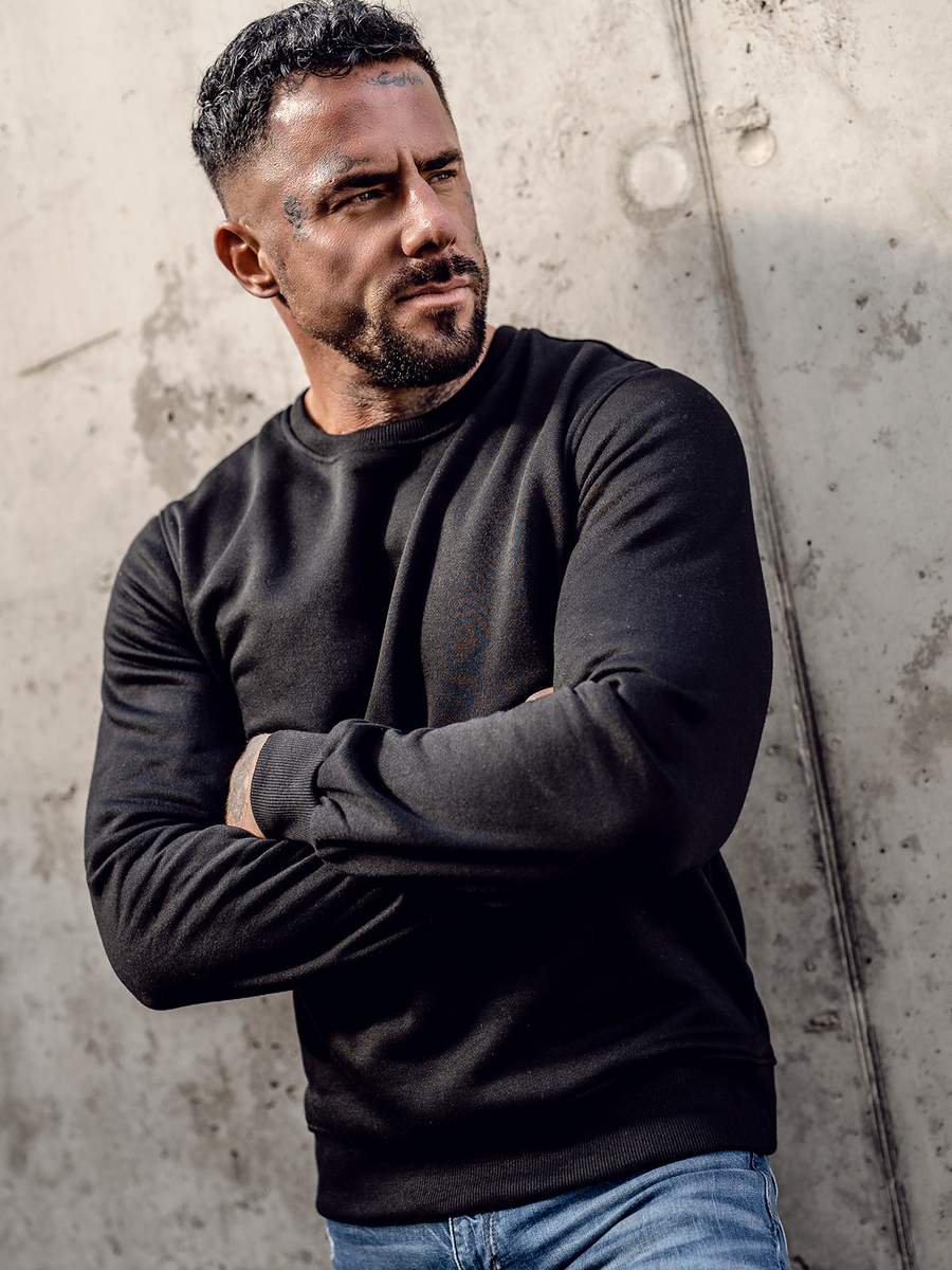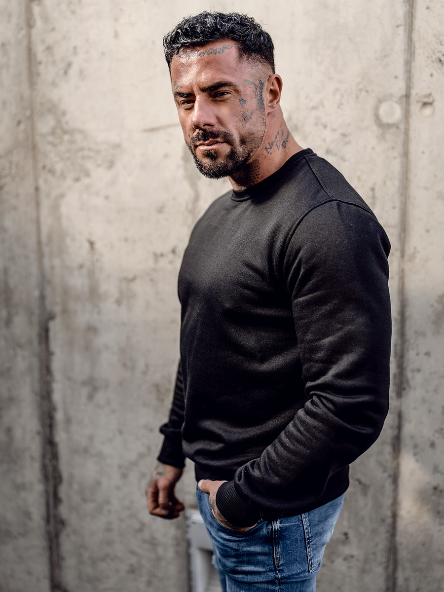 Fekete színű, kapucni nélküli férfi pulcsi -Bolf 2001A-, basic kategóriás ajánlatunk. Ez a modell számos, többé-kevésbé intenzív színben is kapható, így számtalan ruhával könnyen összeilleszthető. A pulcsikat kifejezetten a minimalista divatirányzatok rajongóinak számára ajánljuk. Minta nélküli, kényelmes, szépen varrott. Must have a férfi divatos ruhásszekrényében. Az egyszerű, klasszikus, érdekes színű fazonjának köszönhetően ez a pulcsimodell nagyszerűen kiegészít számos hétköznapi és streetes stilizációt. Az ujjak és a pulcsi alsó része széles passzéval ellátva. A termék kellemes tapintású és tartós melegítőanyagból készült.