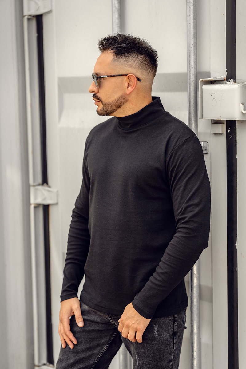 Fekete színű, basic típusú félgarbó -Bolf 145348- azoknak a férfiaknak ajánlott, akik értékelik a modern eleganciát és a kényelmet a hétköznapi viseletben is. A minta nélküli, basic típusú pulóver, remekül passzol a klasszikus stilizációkhoz. 100%-ban pamutból készült, ennek köszönhetően a termék praktikus és nagyszerűen mutat minden alakon. Ez a modell többféle színben kapható, ennek köszönhetően bármilyen ruhadarabokkal párosítható. Félgarbó, ideális alapként szolgál minden divatos férfi stilizációhoz. Nagyszerű viselet különböző alkalmakra, jól mutat laza és hivatalos stílusban is. Nagyszerűen mutat párban farmerral, joggerrel vagy elegáns stilizációban chinóval és zakóval.