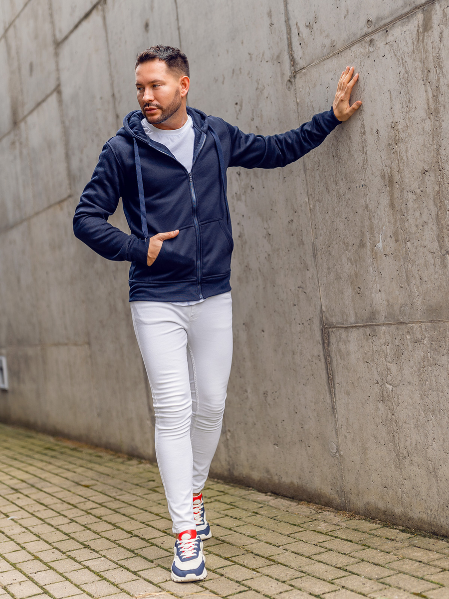 Tintakék színű, cipzározható, férfi pulcsi kapucnival, Bolf 2008A. Klasszikus szabású pulcsi, puha, kellemes tapintású melegítőanyagból készült. A termék több színben kapható, ami jellegzetessé teszi. Egyszínű, állítható kapucnival és két oldalsó, nem zárható zsebbel. A pulcsi alja és az ujjai erős passzéval vannak ellátva. A pulcsit elsősorban a minimalizmus és a kényelem kedvelőinek ajánljuk. Szépen varrott és kényelmes. Must have a férfi divatos ruhásszekrényében. Az egyszerű, klasszikus, érdekes színű fazonjának köszönhetően ez a pulcsimodell nagyszerűen kiegészít számos hétköznapi, streetes és sportos stilizációt. A nyitható, minta nélküli férfi pulcsi olyan ajánlat, amelyet érdemes egy-, vagy többféle színben is a ruhatárban tartani. A klasszikus feketétől a gránátkék és piros árnyalatokon át az extravagáns sárgaig, narancssárga vagy a rózsaszín színekig. A pulcsi minden évszakban és bármilyen körülmények között tökéletesen megállja a helyét.