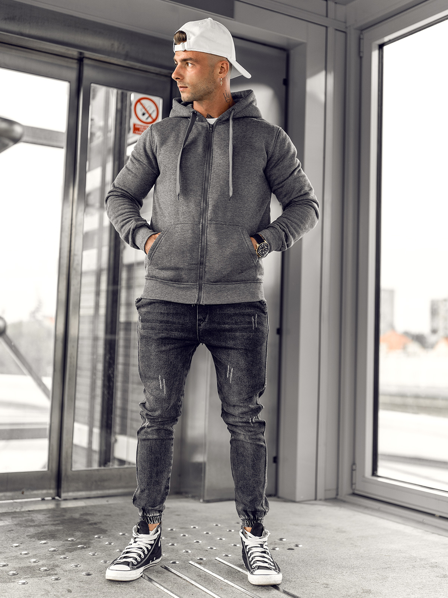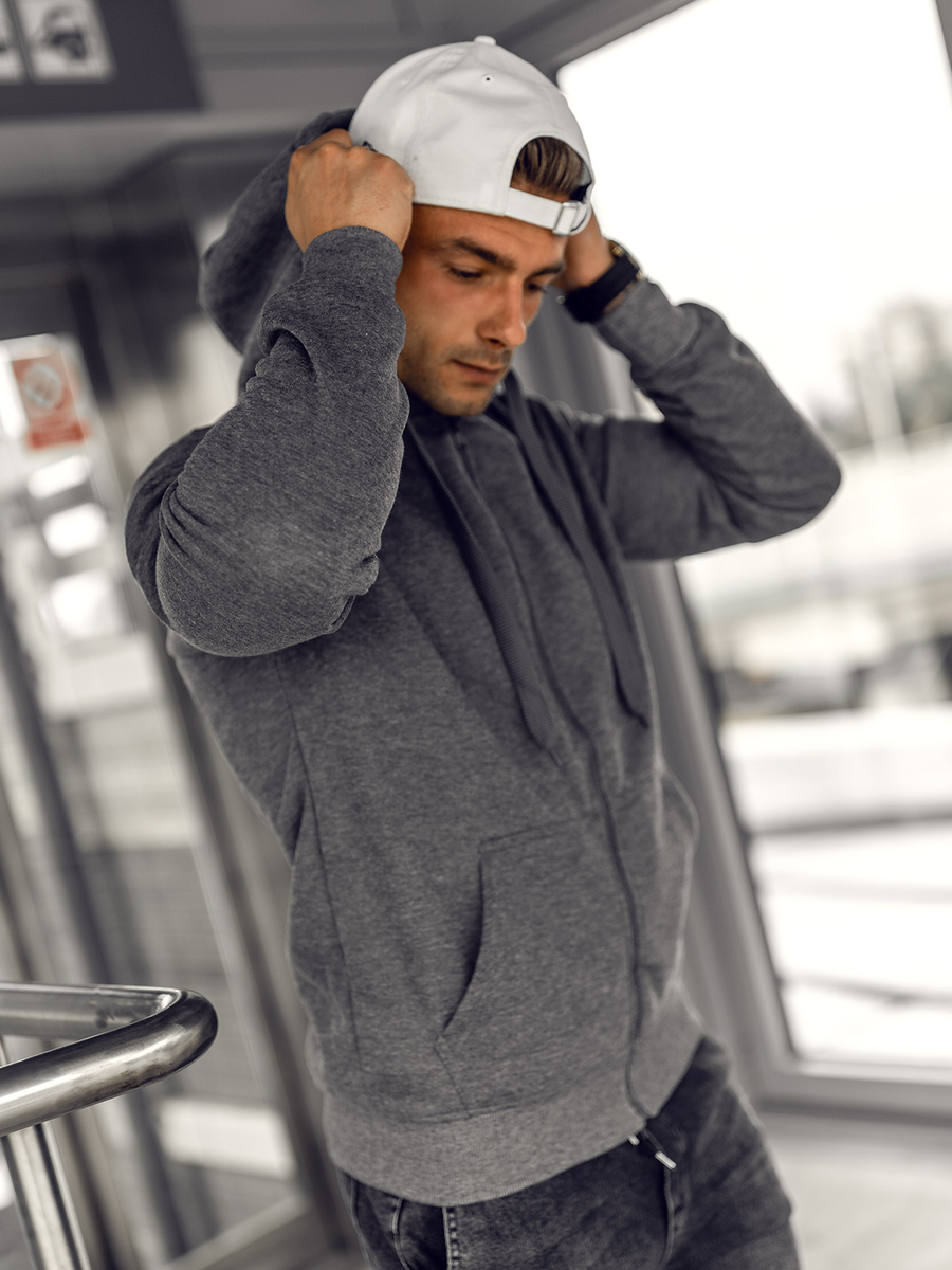 Antracitszürke színű, cipzározható, férfi pulcsi kapucnival, Bolf 2008A. Klasszikus szabású pulcsi, puha, kellemes tapintású melegítőanyagból készült. A termék több színben kapható, ami jellegzetessé teszi. Egyszínű, állítható kapucnival és két oldalsó, nem zárható zsebbel. A pulcsi alja és az ujjai erős passzéval vannak ellátva. A pulcsit elsősorban a minimalizmus és a kényelem kedvelőinek ajánljuk. Szépen varrott és kényelmes. Must have a férfi divatos ruhásszekrényében. Az egyszerű, klasszikus, érdekes színű fazonjának köszönhetően ez a pulcsimodell nagyszerűen kiegészít számos hétköznapi, streetes és sportos stilizációt. A nyitható, minta nélküli férfi pulcsi olyan ajánlat, amelyet érdemes egy-, vagy többféle színben is a ruhatárban tartani. A klasszikus feketétől a gránátkék és piros árnyalatokon át az extravagáns sárgaig, narancssárga vagy a rózsaszín színekig. A pulcsi minden évszakban és bármilyen körülmények között tökéletesen megállja a helyét.