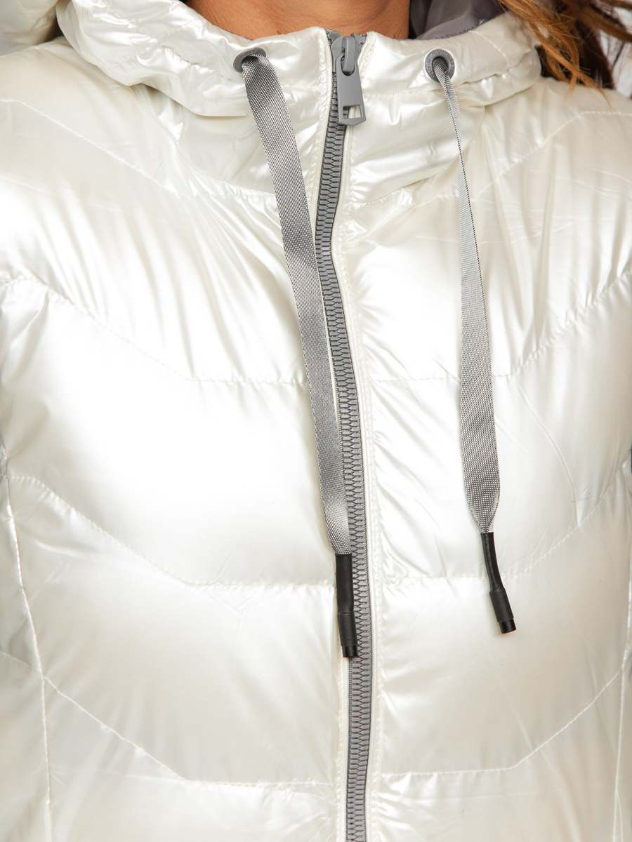 A felhasználók véleménye Fehér színű hosszú steppelt női mellény kapucnival Bolf 7043
