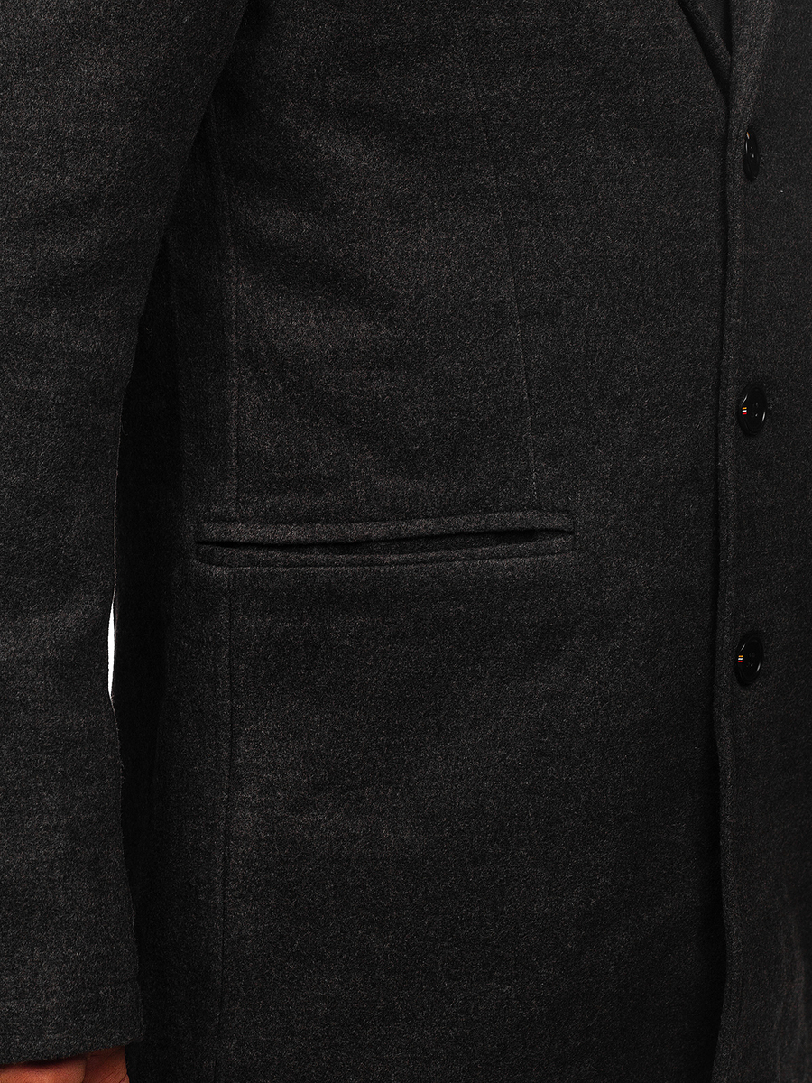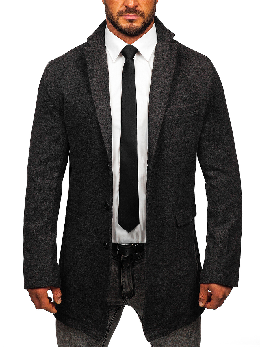 Grafit színű férfi kabát, Bolf 1047 - fantasztikus egysoros gombolású, chesterfield típusú kabát . Meleg, szőrmés béléssel rendelkezik és vastag anyagból készült, ennek köszönhetően ideális lehet a téli, hűvös napokra. . Gombolható termék, amely klasszikus, nyitott hajtókákkal ellátott gallérral és mutatós díszzsebkendőtartóval zseb a mellkason rendelkezik. Két külső zsebbel és két belső gombolható zsebbel Jellegzetessé a dekoratív gombok az ujjak végén teszik és a stílusos vágás hátul.